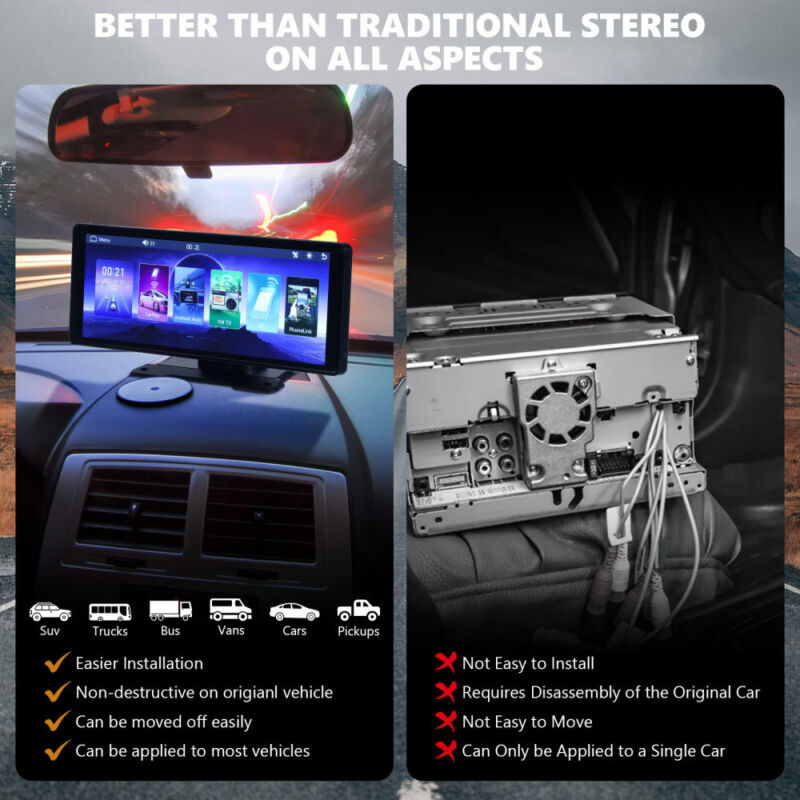 Portable Apple Car Play & Android Auto 10.26" Touch Screen 2.5K Car Stereo Radio
