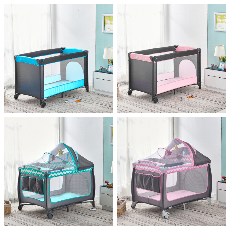Portable Baby Travel Cot Crib Bassinet Bed Playpen Infants with Mattress Folding