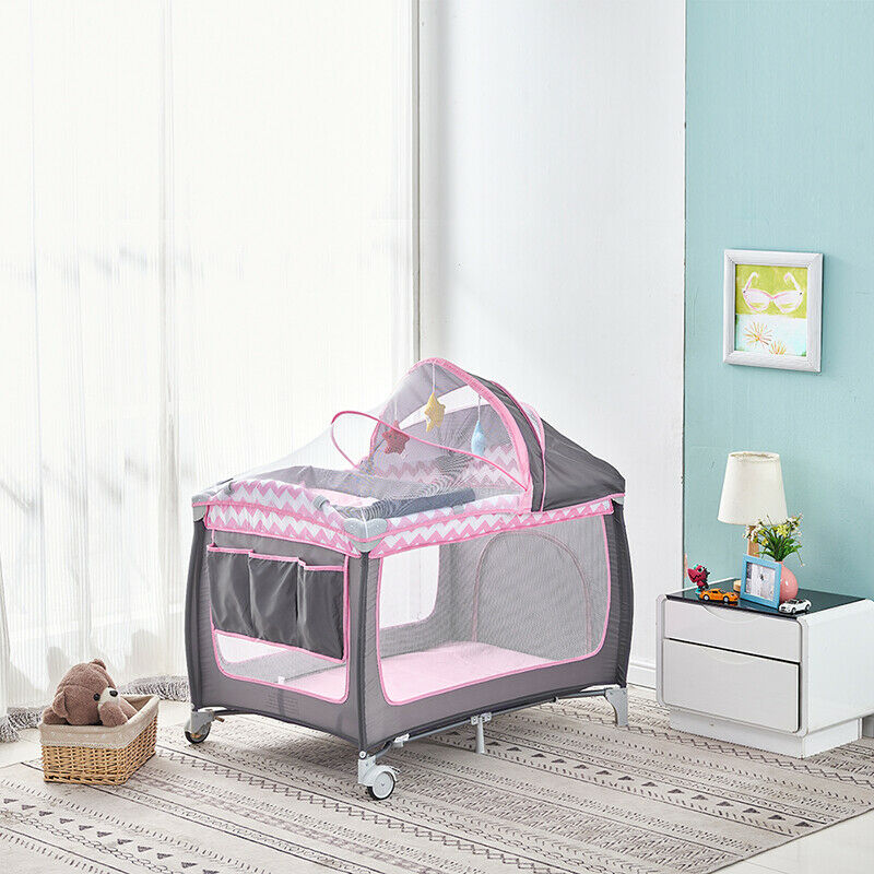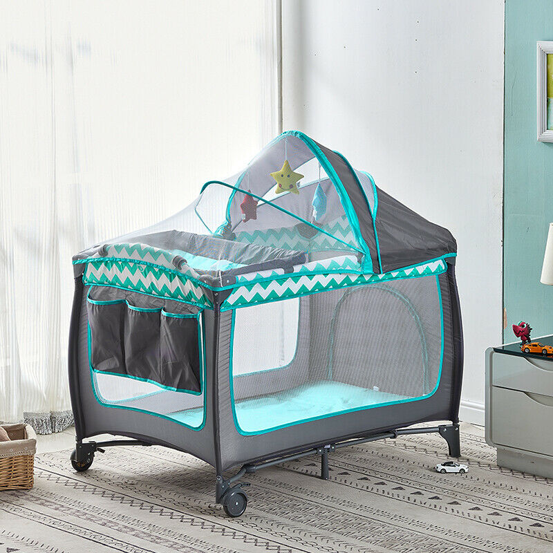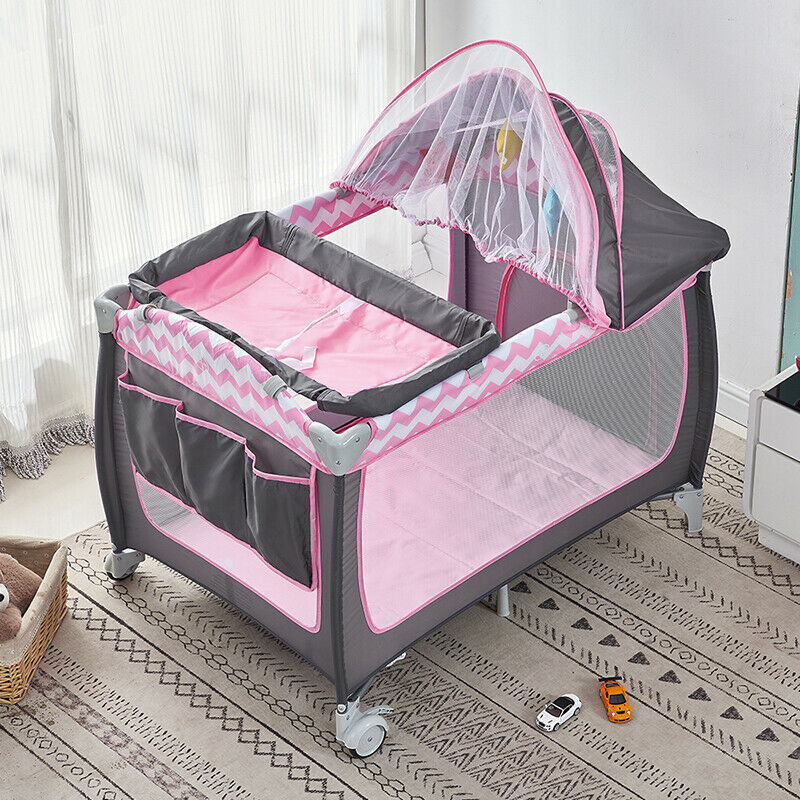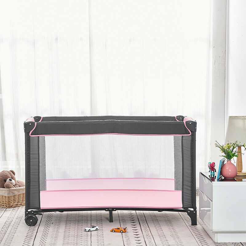 Portable Baby Travel Cot Crib Bassinet Bed Playpen Infants with Mattress Folding