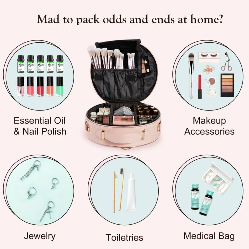 Portable Beauty Case Cosmetic Make up Vanity Case Nail Toiletry Travel Bag Round