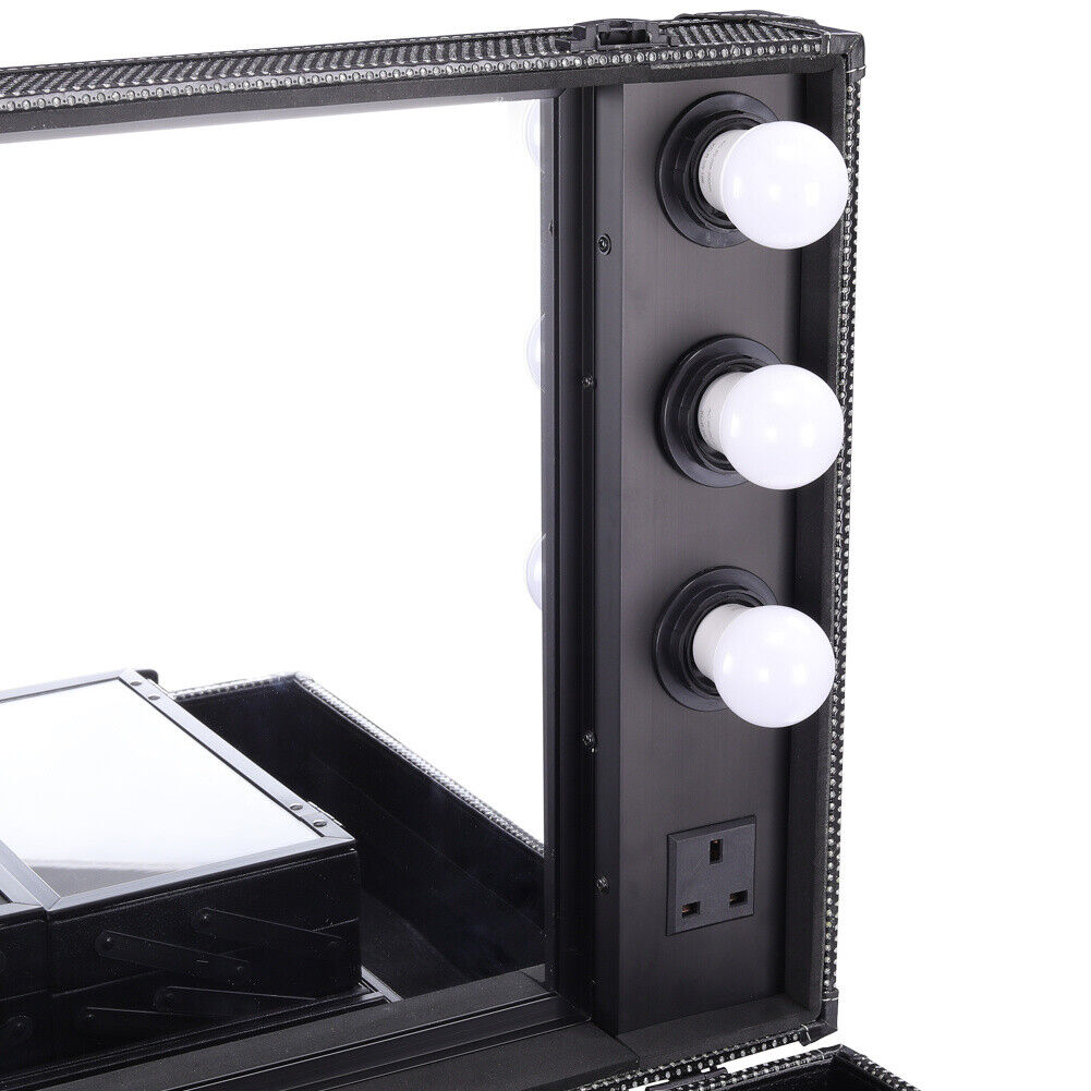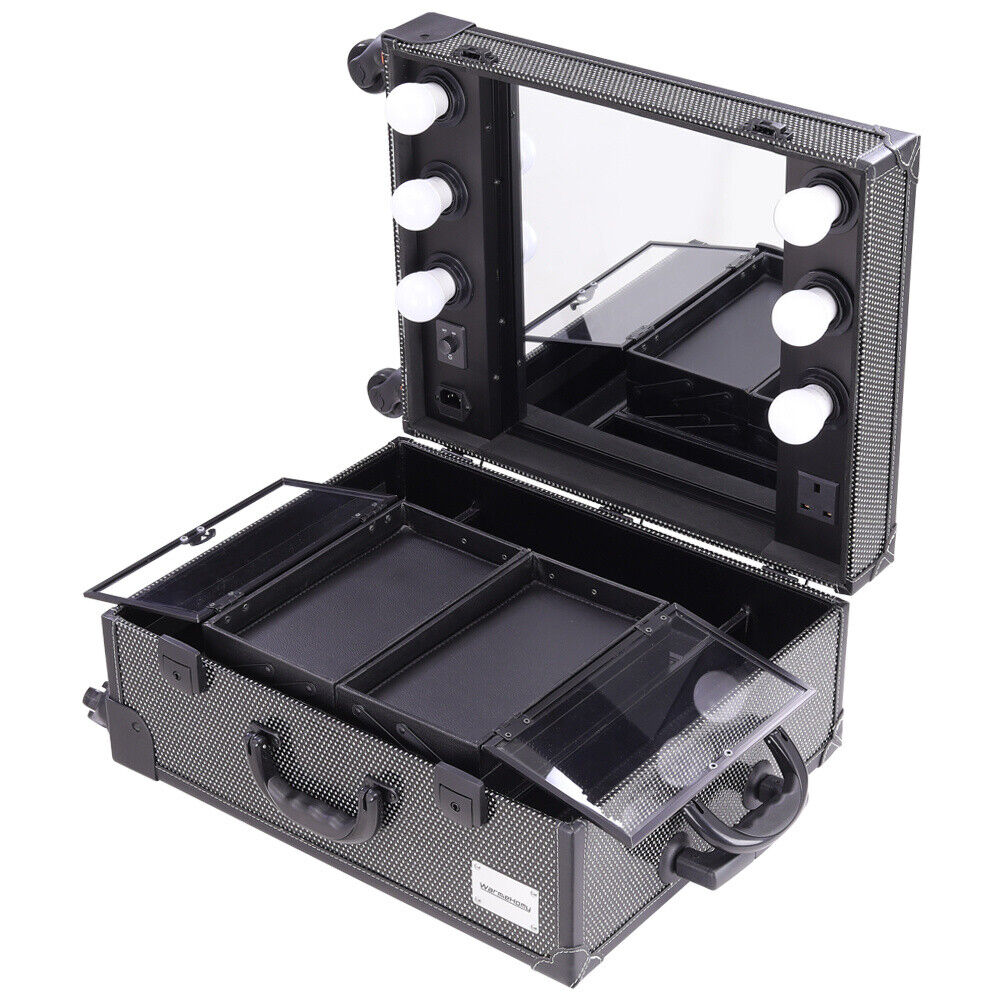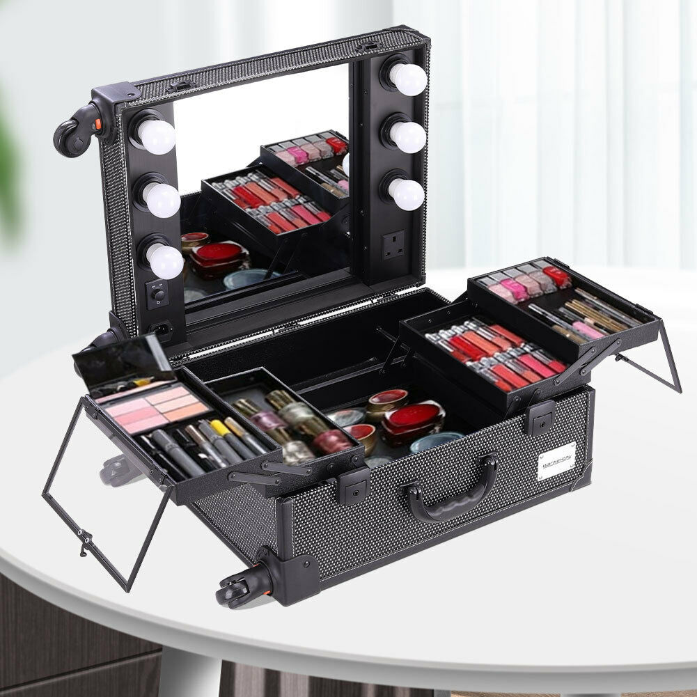 Portable Beauty Makeup Case Rolling Trolley Box Travel Workstation Lights Mirror