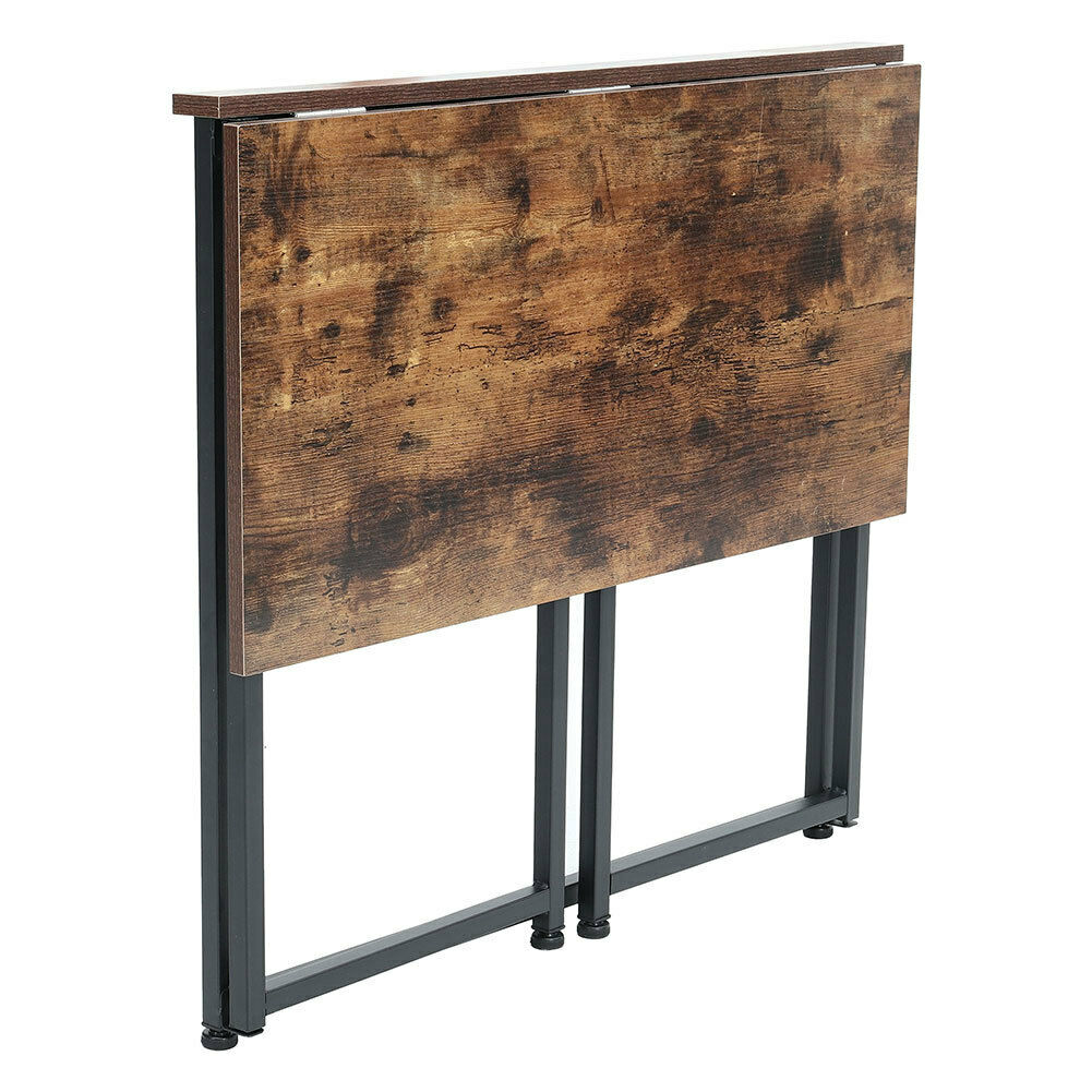 - Features: Flat Pack, Folding, Vintage Brown Wood Effect Tabletop, Sturdy Metal Frame