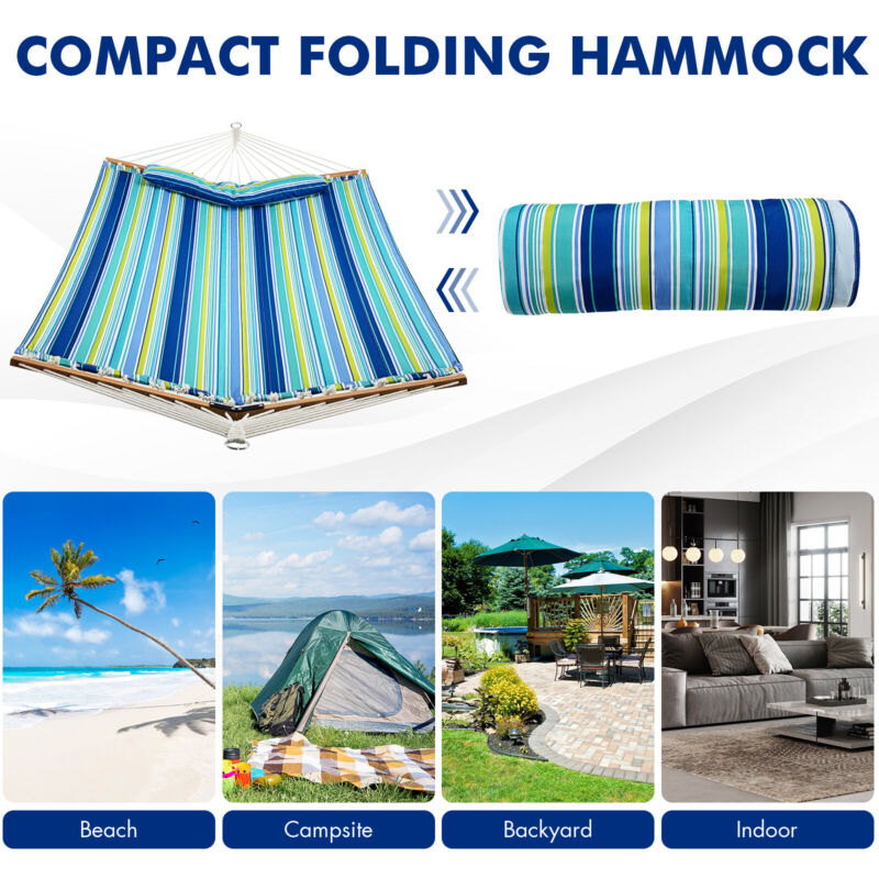 Portable Hammock Outdoor Garden Camping Hanging Swing with Detachable Pillow