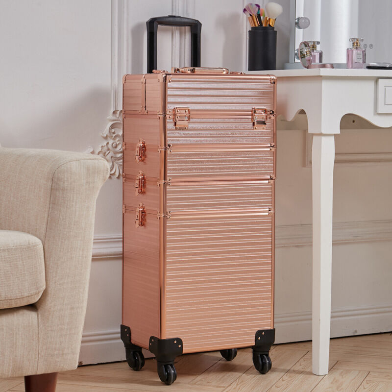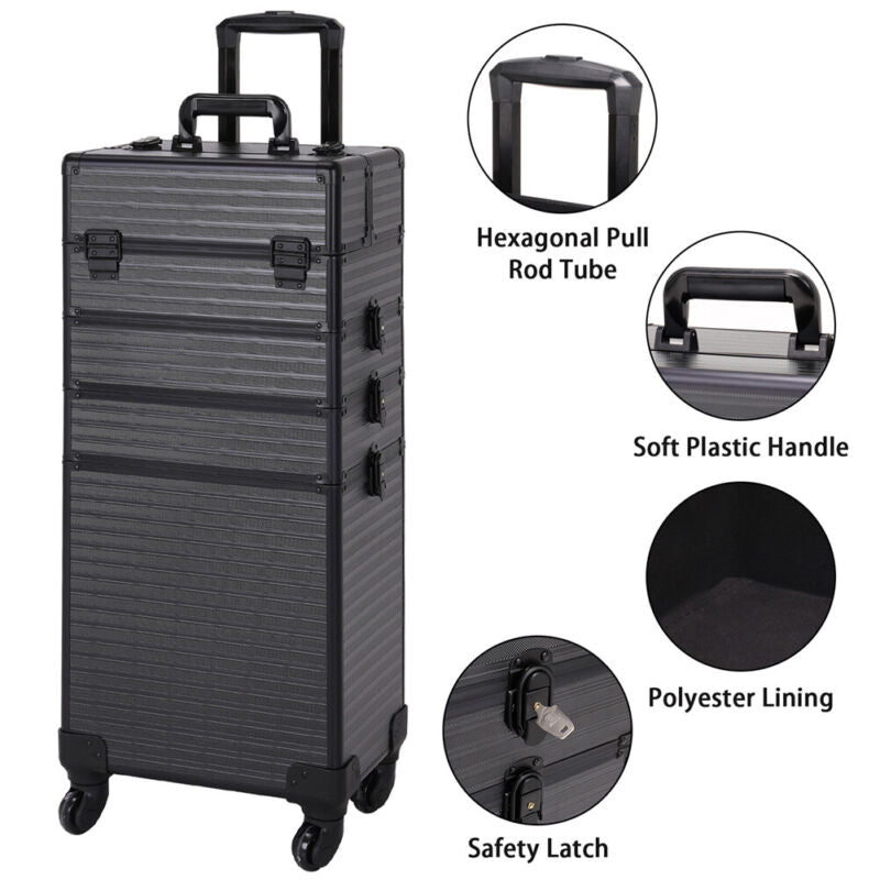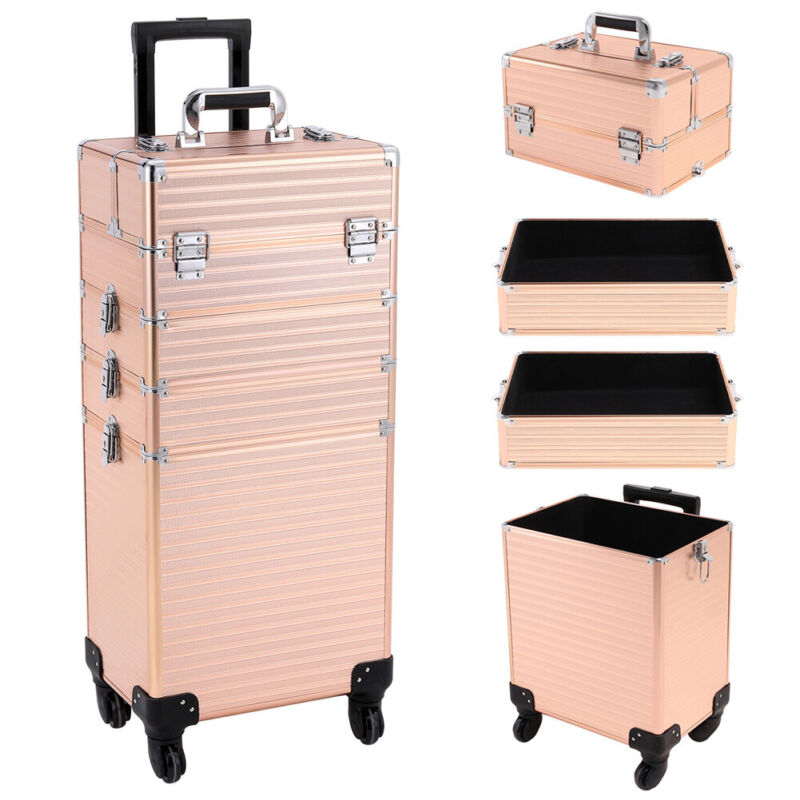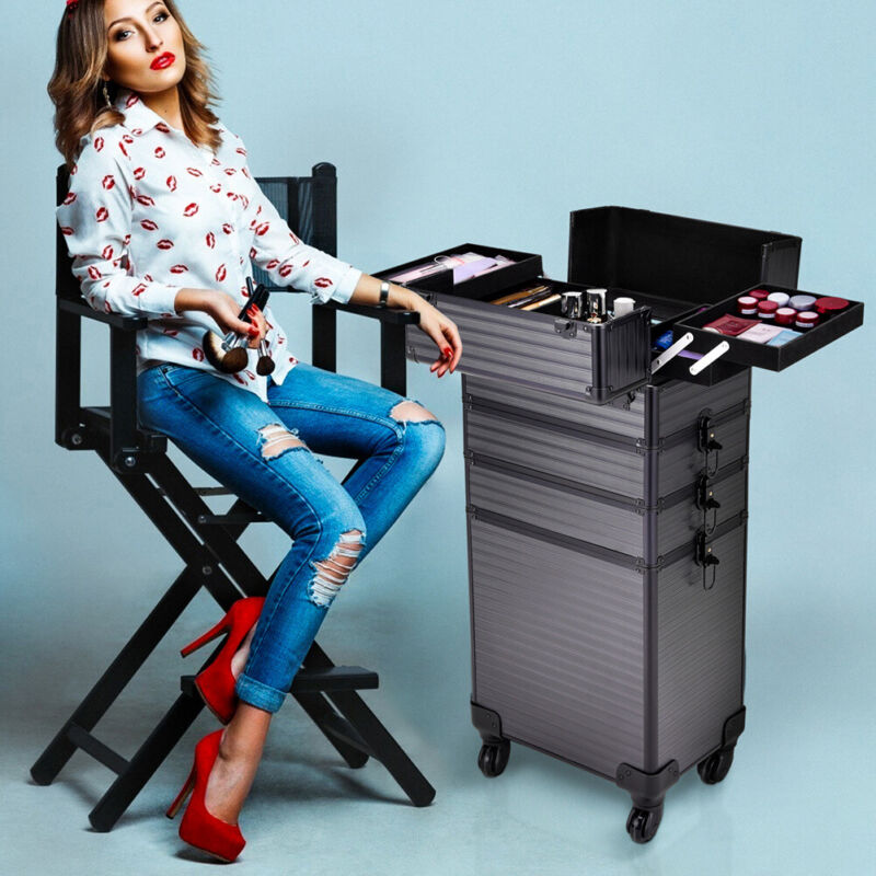 Portable Large 4 in 1 Make-up Case Storage Box Trolley Beauty Cosmetics Suitcase