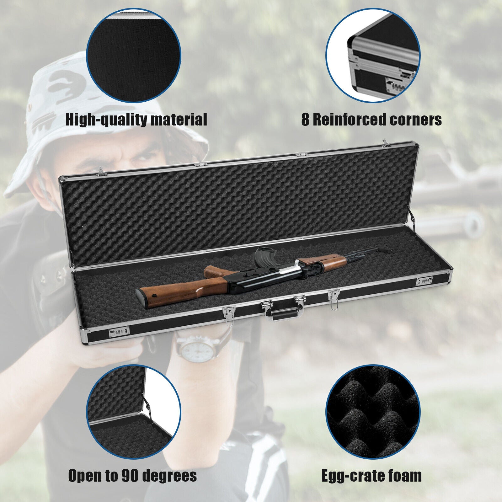 Portable Long Lockable Gun Case Large Hard Rifle Case Shotgun Storage Lock Box
