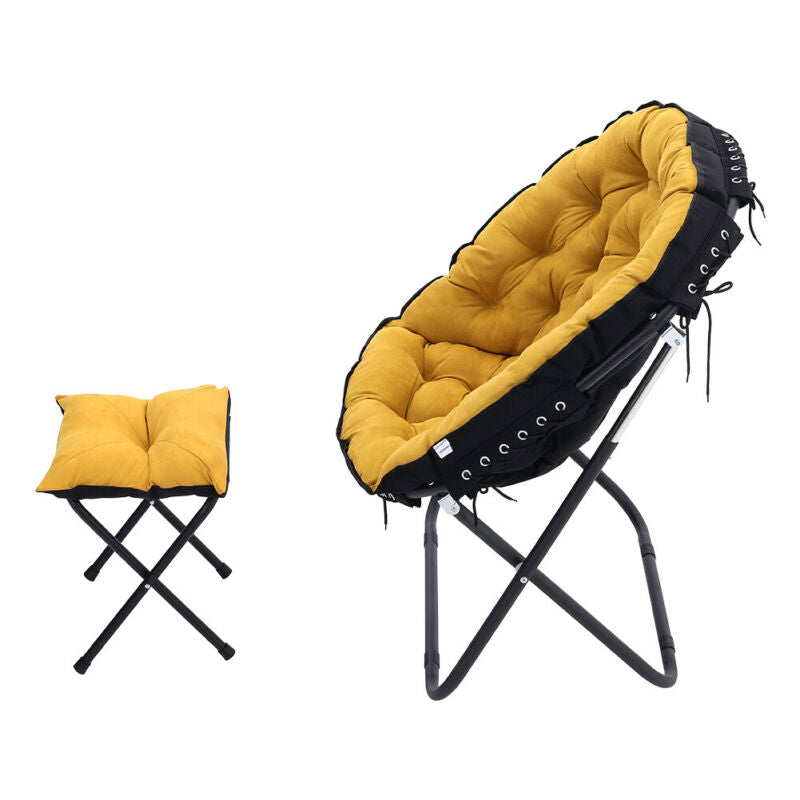 Portable Upholstered Garden Moon Chair Folding Armchair Recliner Sofa With Stool