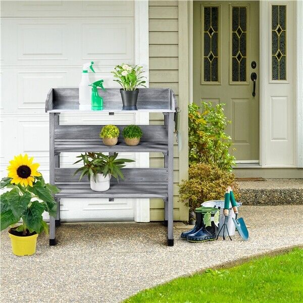 Potting Bench Table Wooden Potting Table Planting Work Station Bench with Shelf