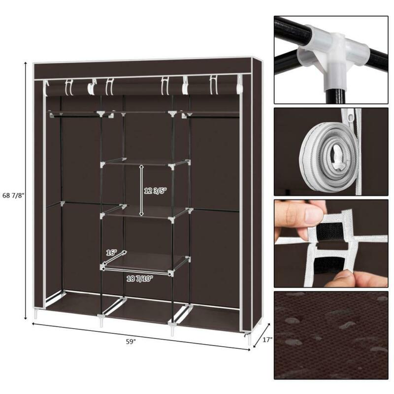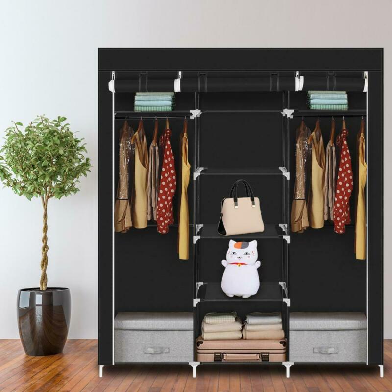 Practical Fabric Canvas Wardrobe Hanging Rail Shelving Clothes Storage Cupboard