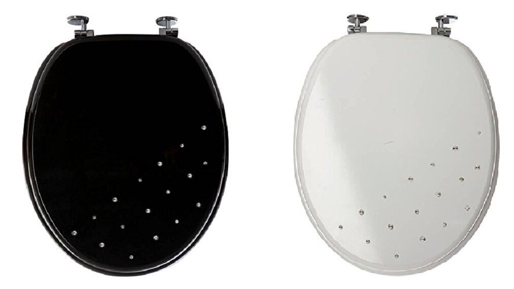 Premier Quality Diamante Toilet Seat Diamond Design Zinc Fittings Black White
