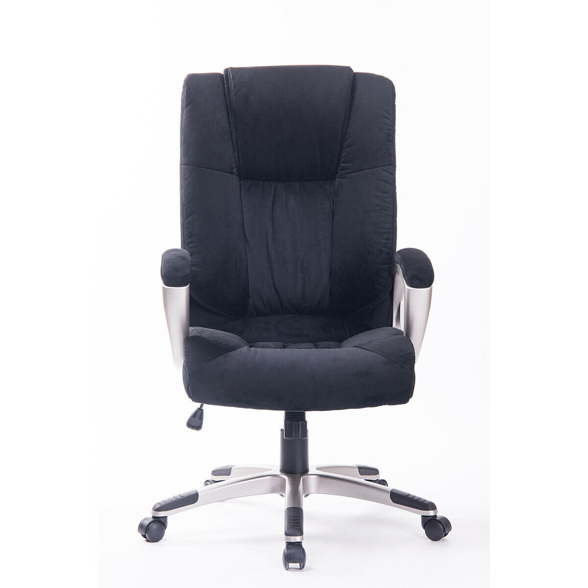 Features: Comfortable Padded PU Fabric, Foam Filled Seating, Padded Armrests, Silver Painted Nylon Legs, Solid Construction and Build, Fast and Free Delivery, Weighted Tilt and Recline, Casters/Wheels, Chair Gas Lift, Ergonomic, High Back, Padded Seat, Swivel