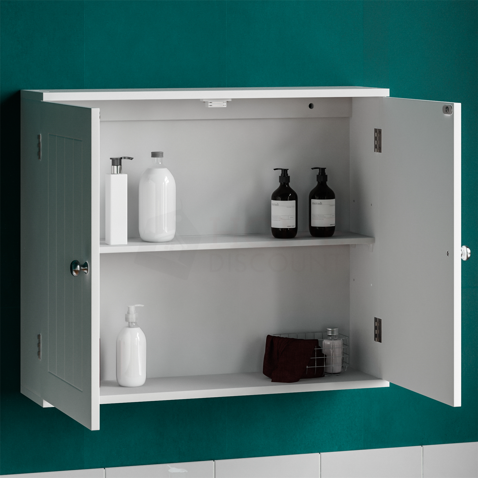 Priano Wall Cabinet 2 Door White Storage Organiser Mounted Cupboard Bathroom
