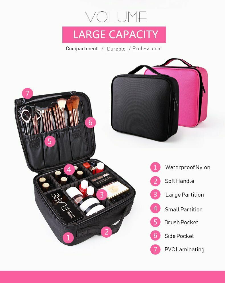 Professional Large Make Up Box Vanity Case Cosmetic Nail Art Travel Beauty Bag