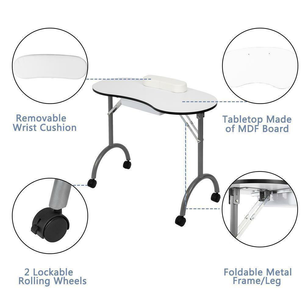 Professional Portable Foldable Mobile Manicure Nail Art Beauty Salon Table Desk