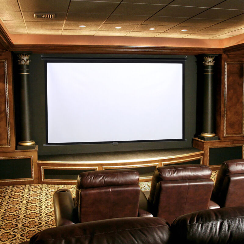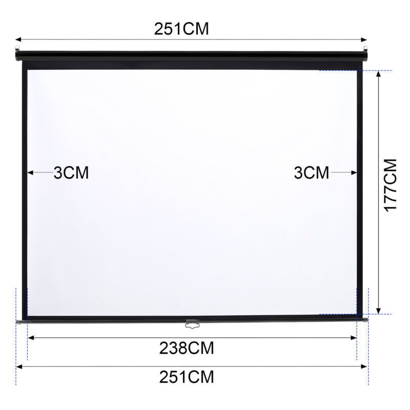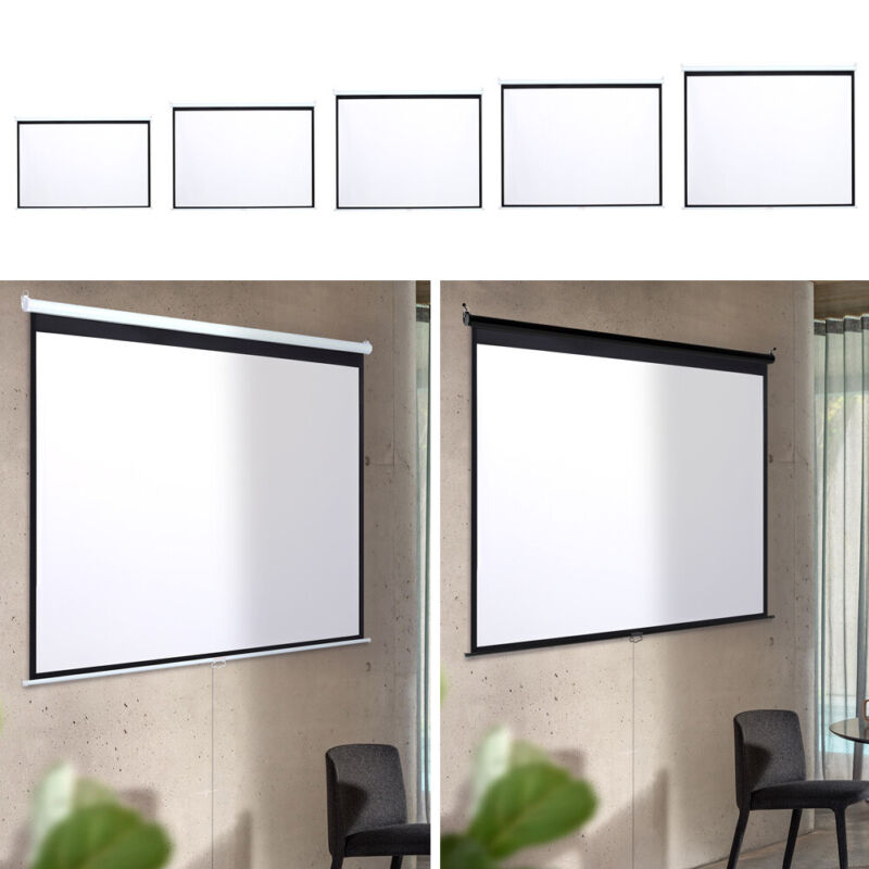 Projector Screen Manual Pull Down Wall Mounted Matt White Home Cinema 60-120''