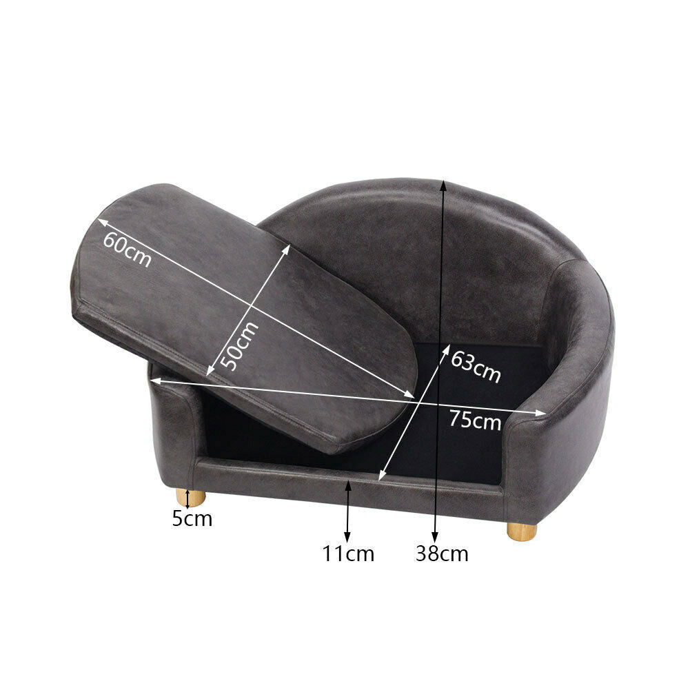 PU Leather Pet Dog Cat Sofa Couch Bed Chair Elevated Lounger + Removable Cushion