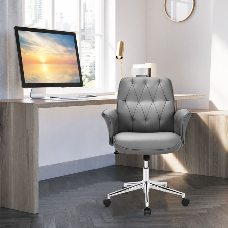 PU Leather Swivel Office Chair Ergonomic Computer Desk Chair Height Adjustable