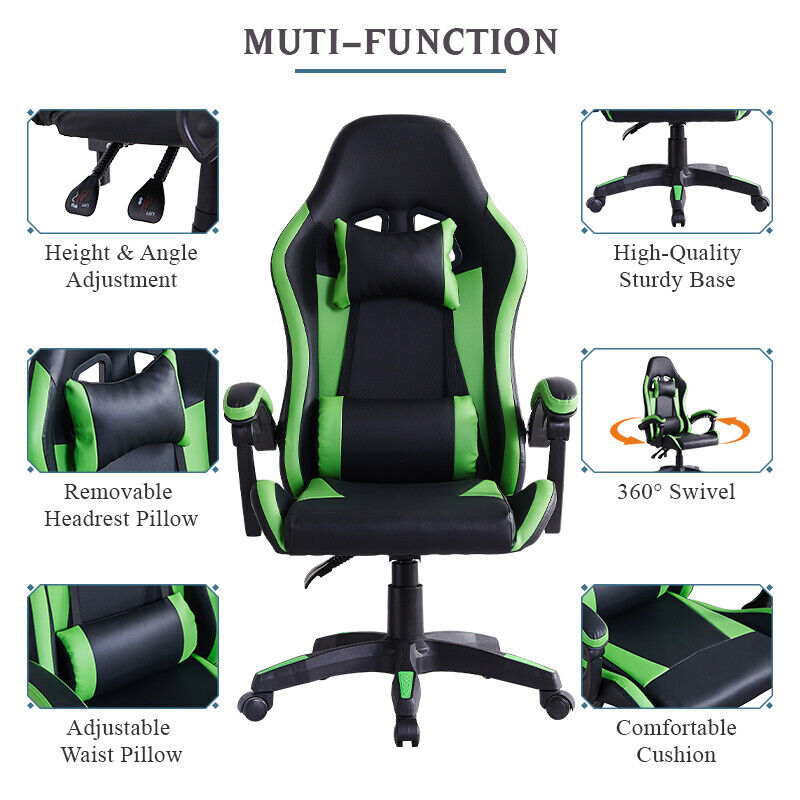 PU Racing Gaming Computer Headrest Highback Desk Chair E-sports PC Home Office