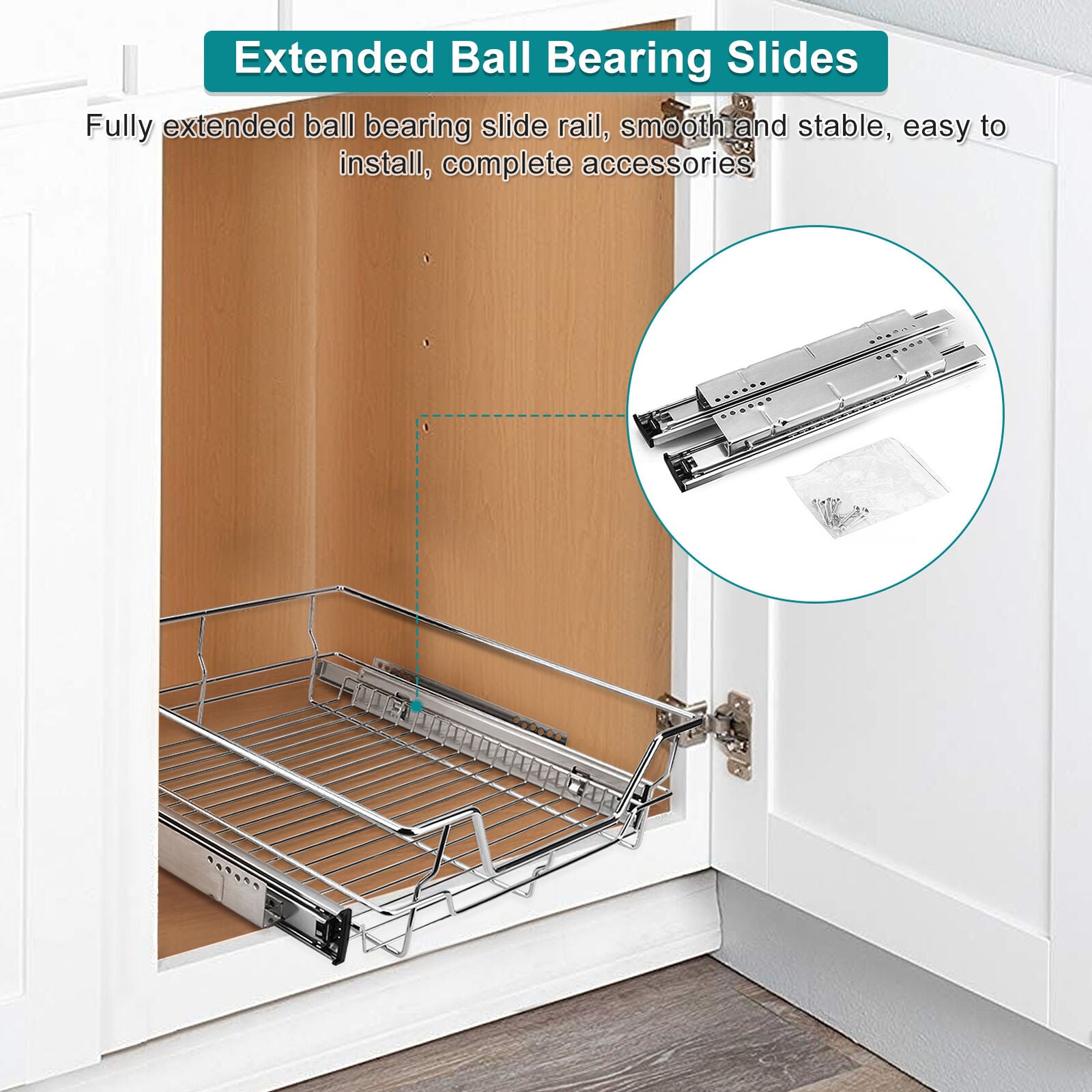 Pull Out Kitchen Basket Slide Out Storage Basket Cupboard Drawer For 350 - 600mm