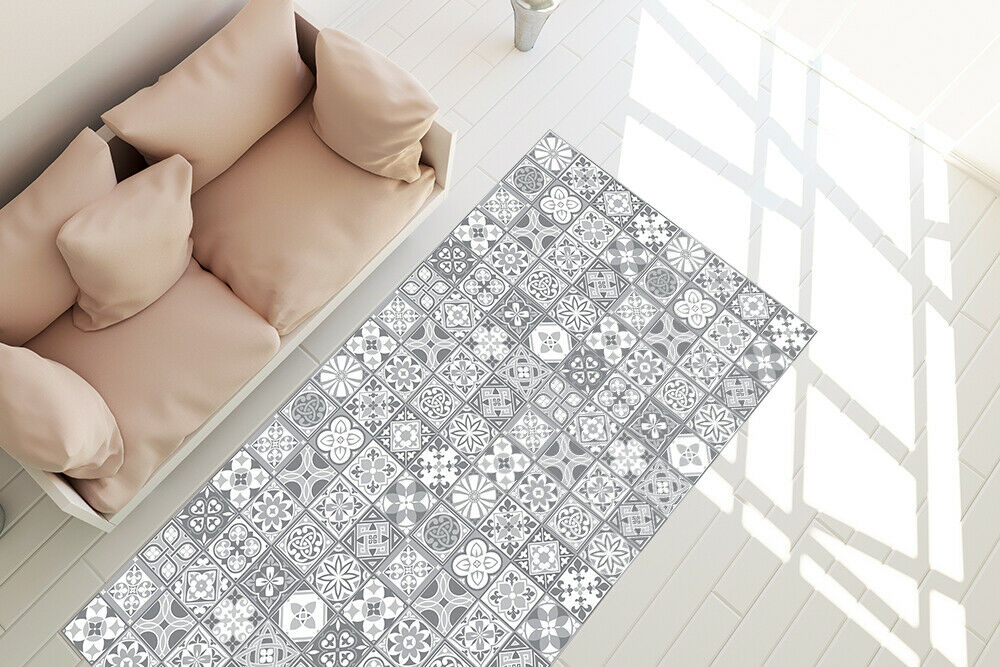 Purbeck Stone Tiles Rug Mat 120cm x 60 cm, non-slip, vinyl mat, easy-clean, home