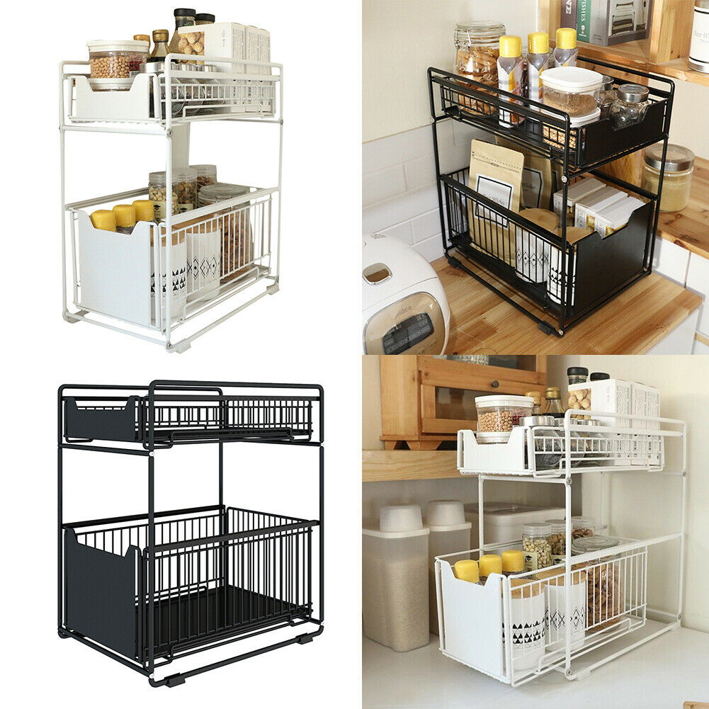 Push&Pull Under Sink Storage Rack Kitchen Cupboard Shelf Organiser Cabinet Stand