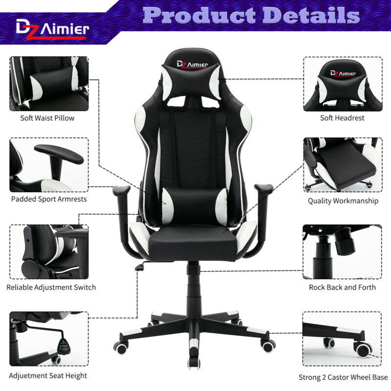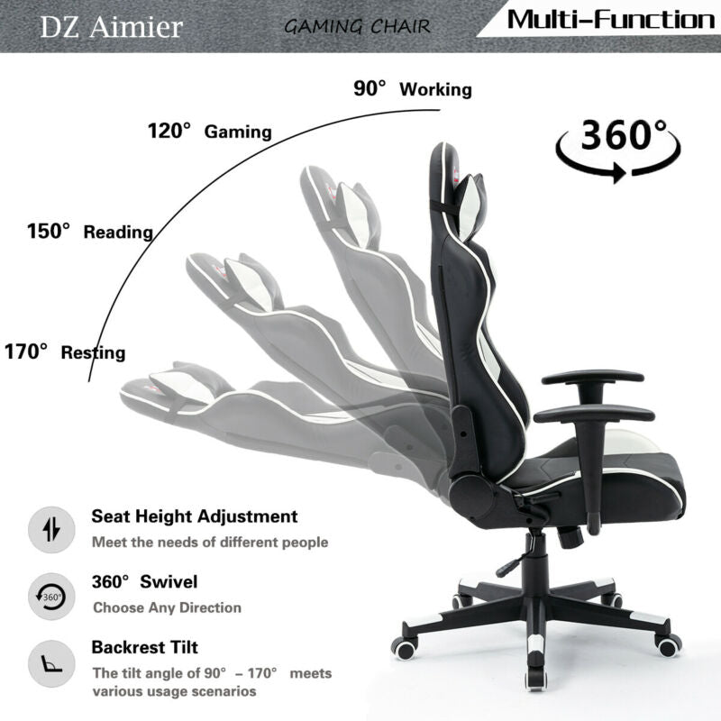 Racing Gaming Chair Computer Office Chair Adjustable Swivel Leather Executive