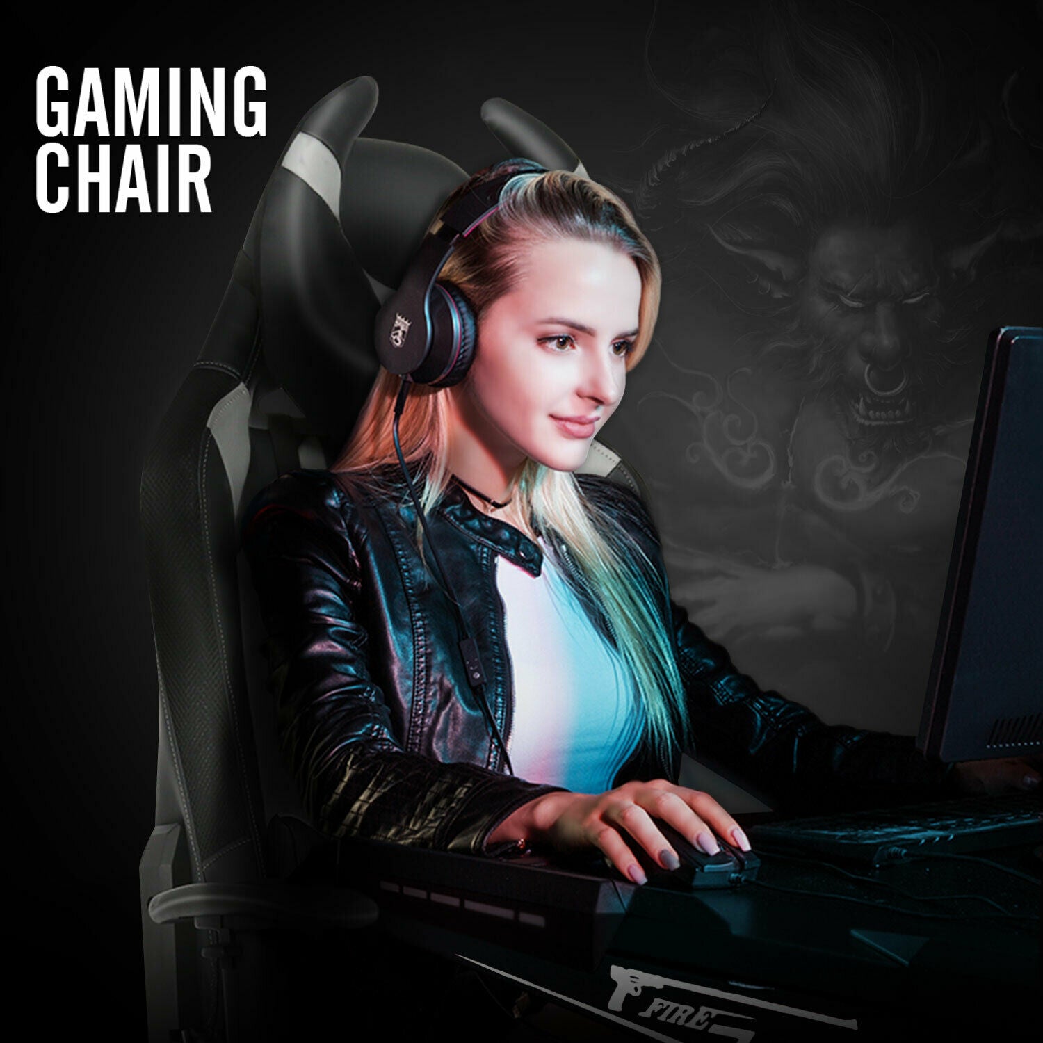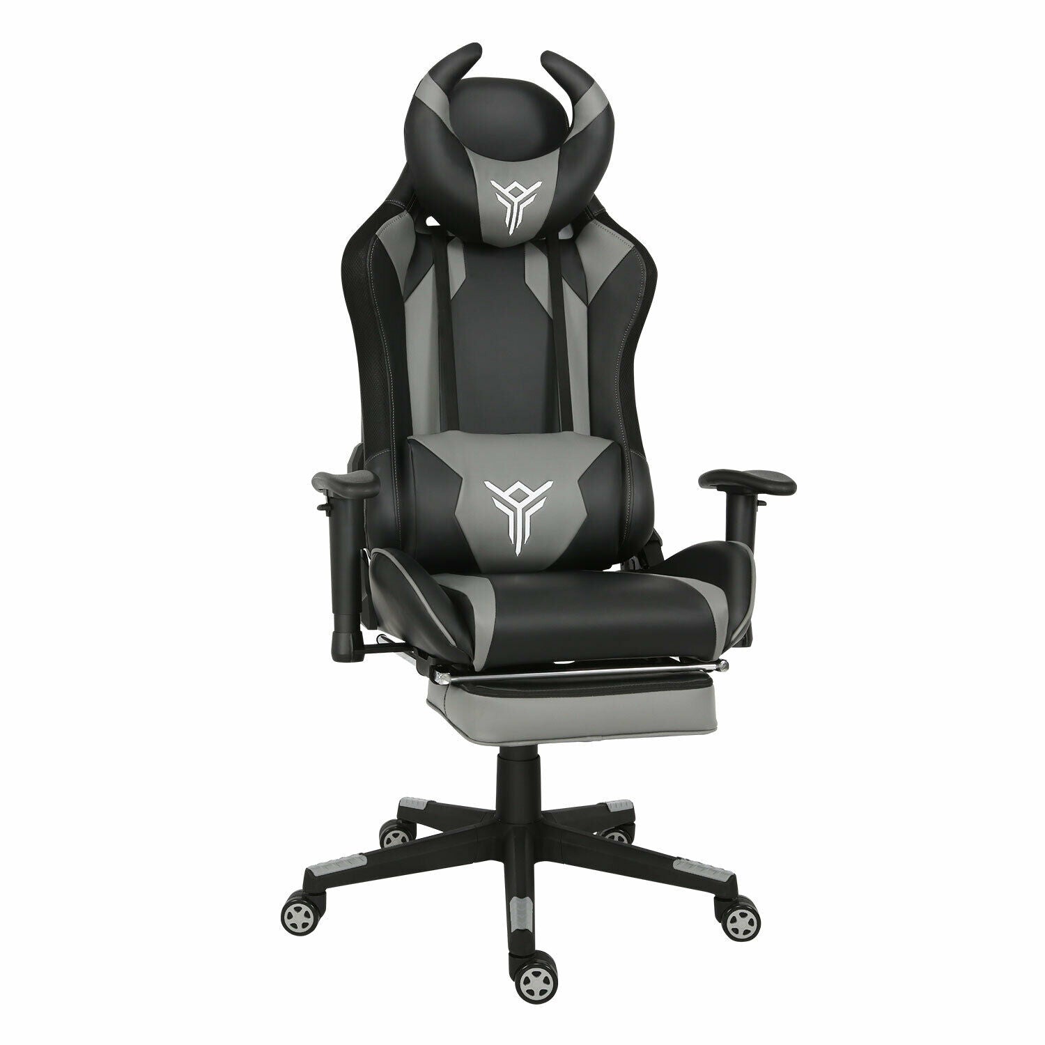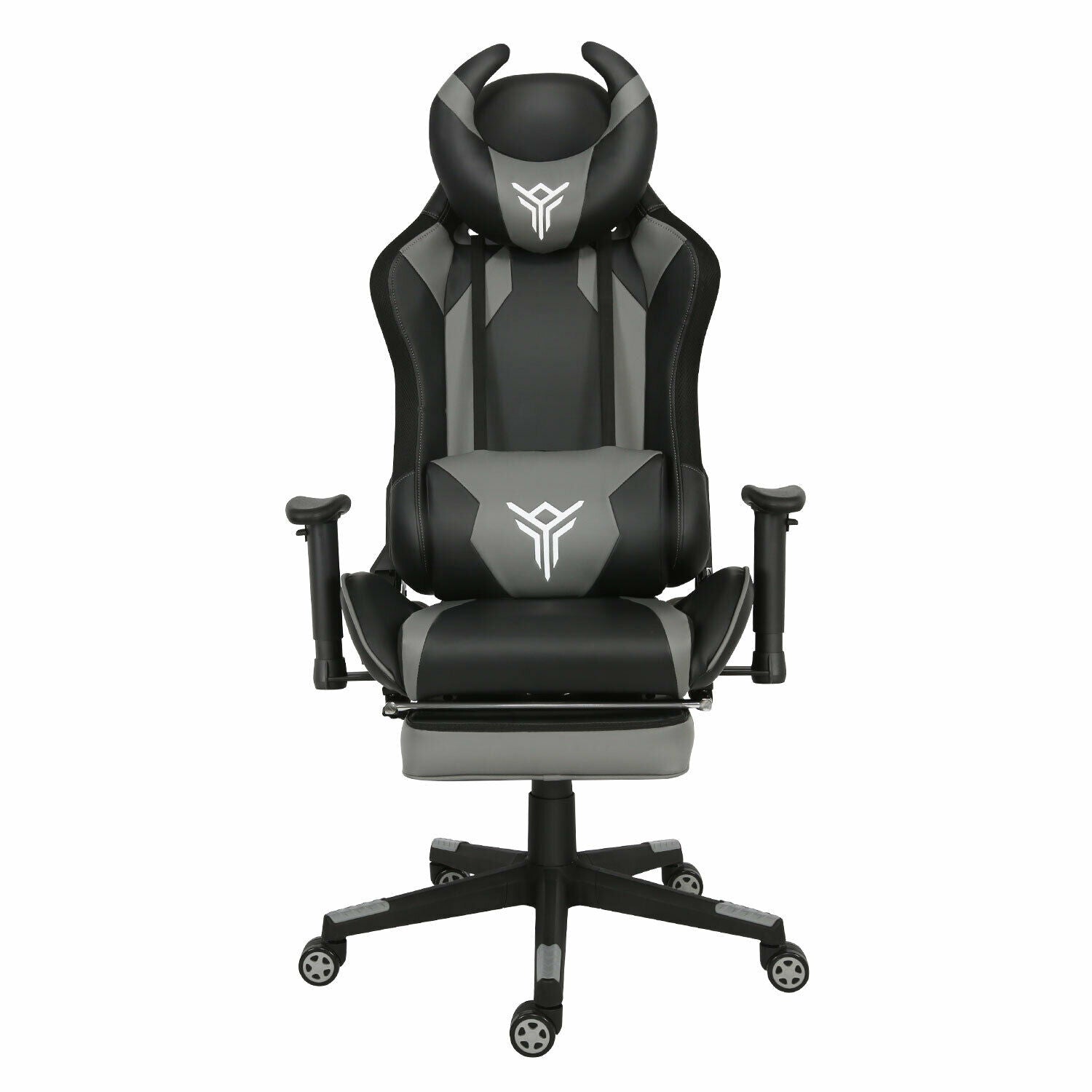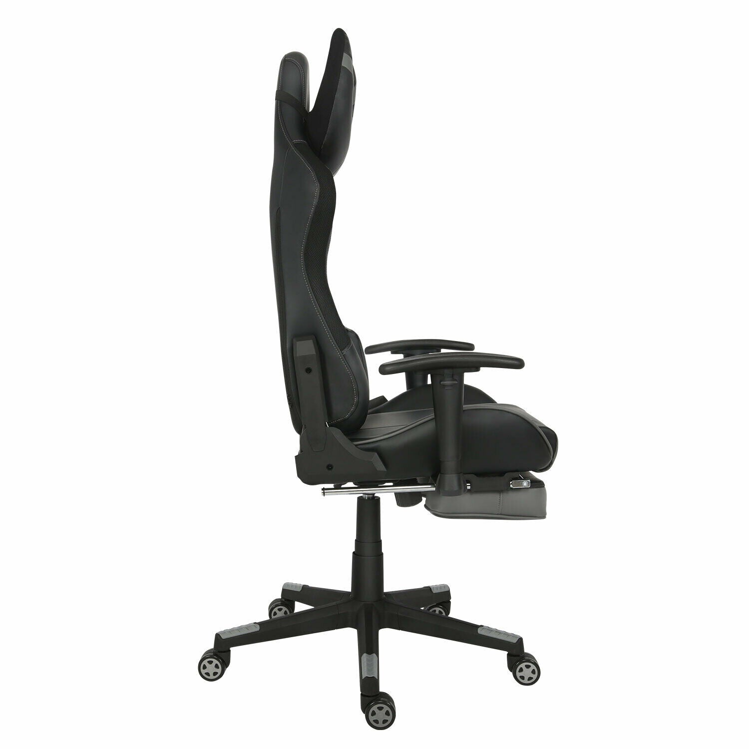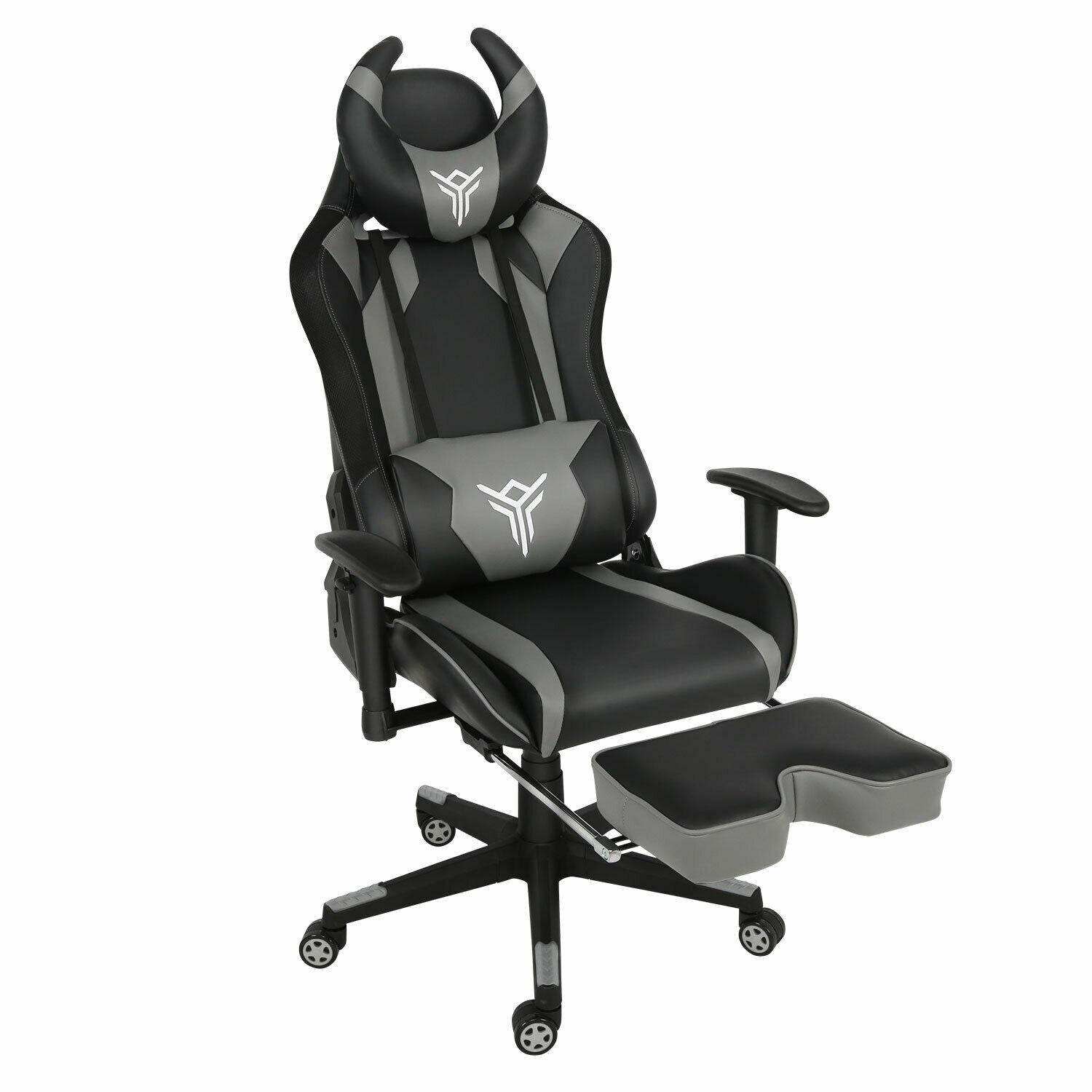 Racing Gaming Chair Swivel PU Computer Desk Office Chair Ergonomic Recliner Grey