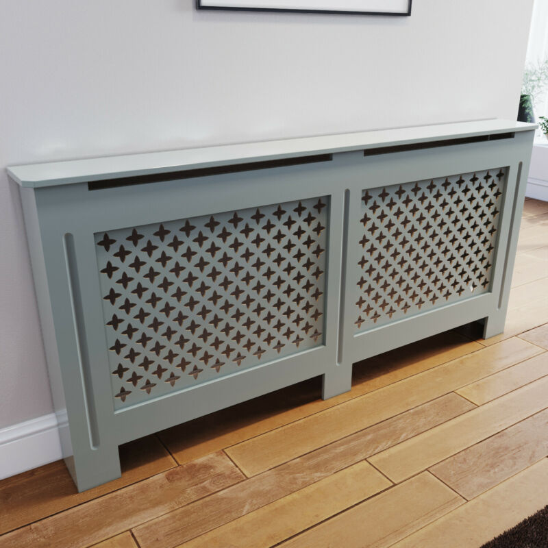 Radiator Cover Extra Large Grey Painted MDF Wood Cross Grill Heating Cover Home