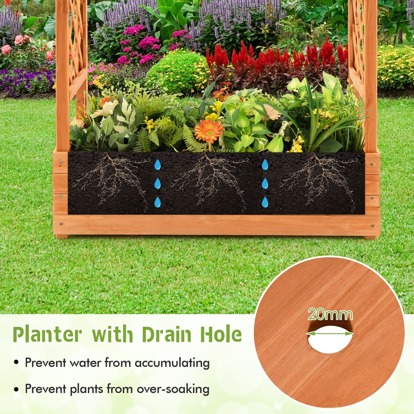 Raised Garden Bed Planter Box w/ Side & Top Trellis for Vine Climbing Plants