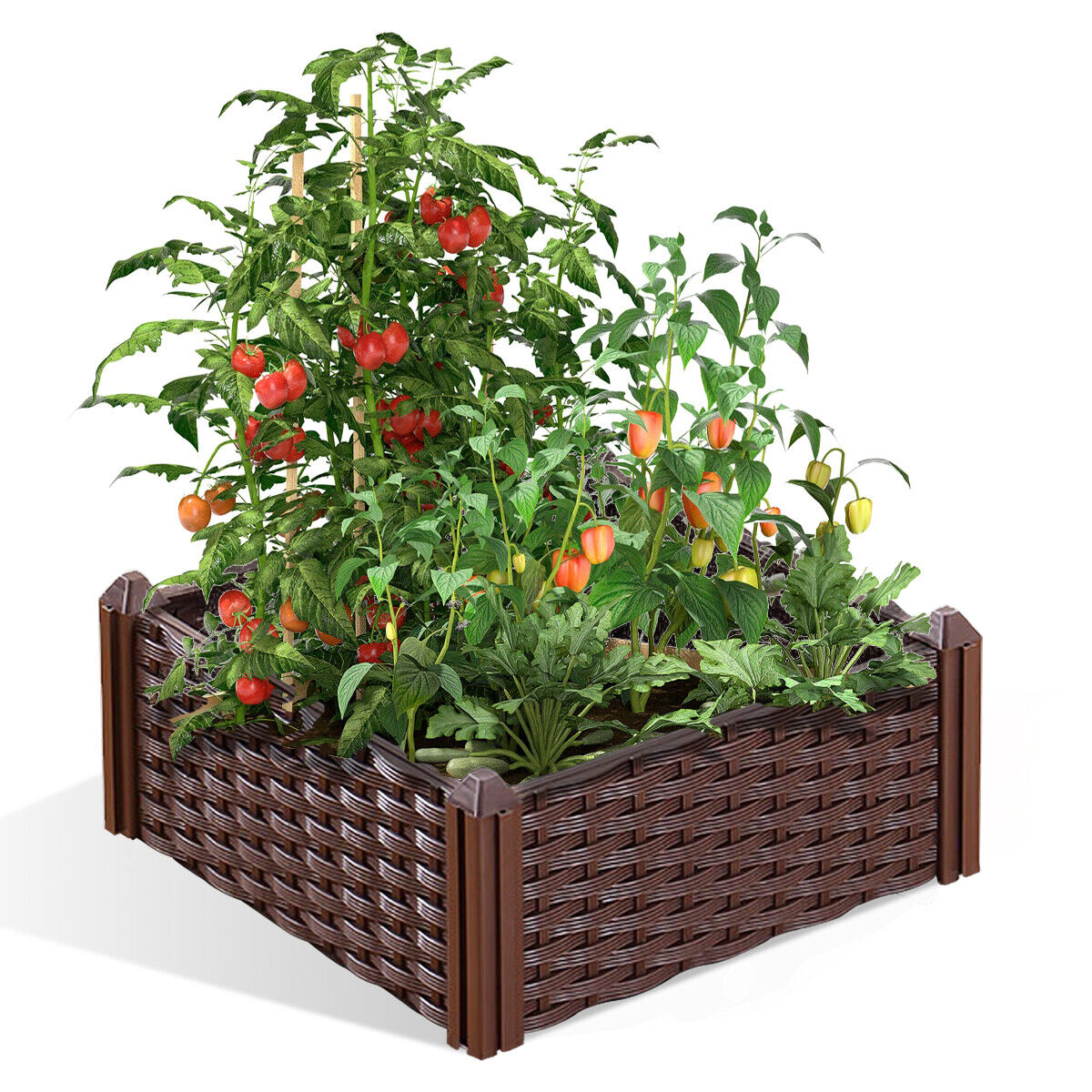 Raised Garden Planter Flower Bed Fence Lawn Edging Pot 4 Piece Rattan Effect