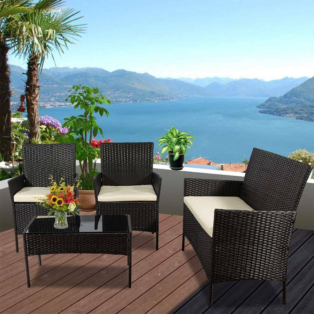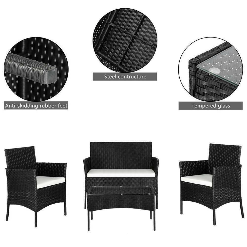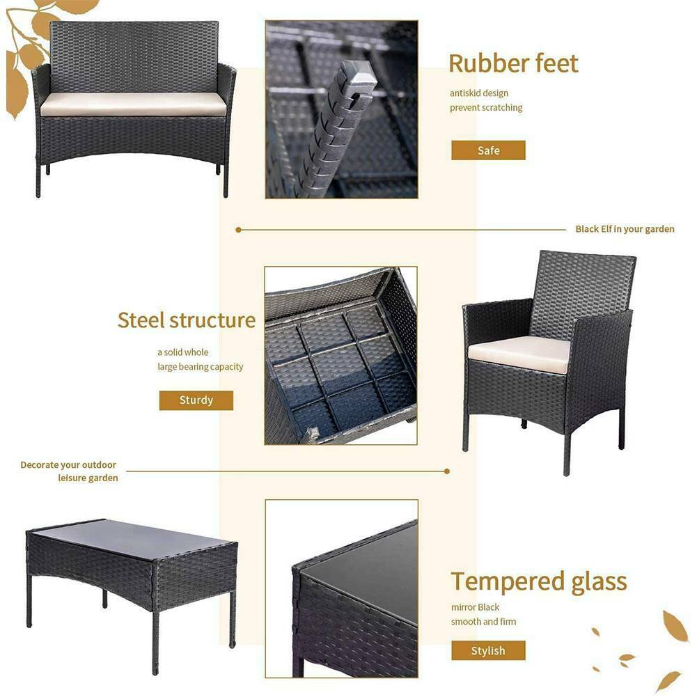 Rattan Garden Furniture Set 4 PCS chairs sofa Table Outdoor Patio Conservatory
