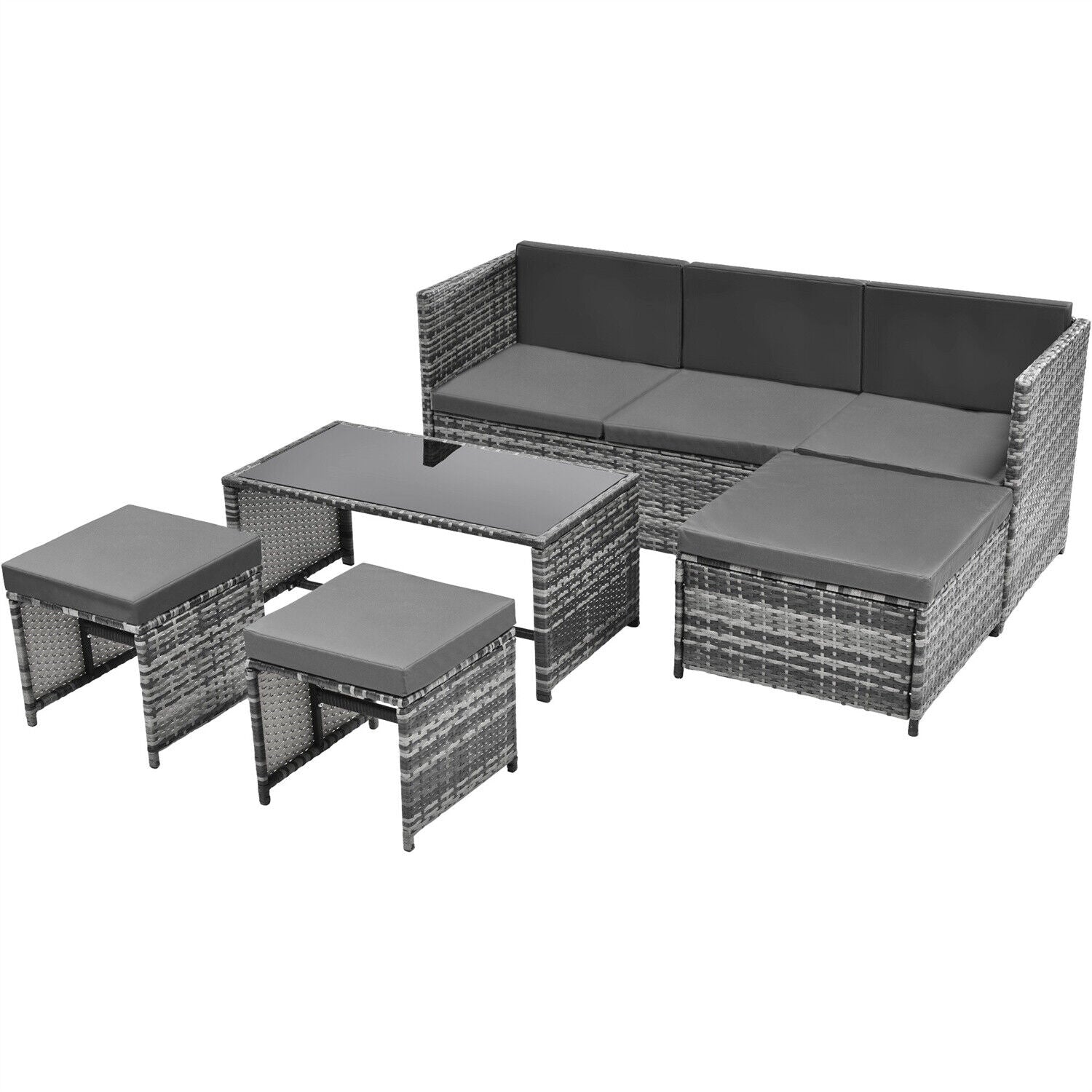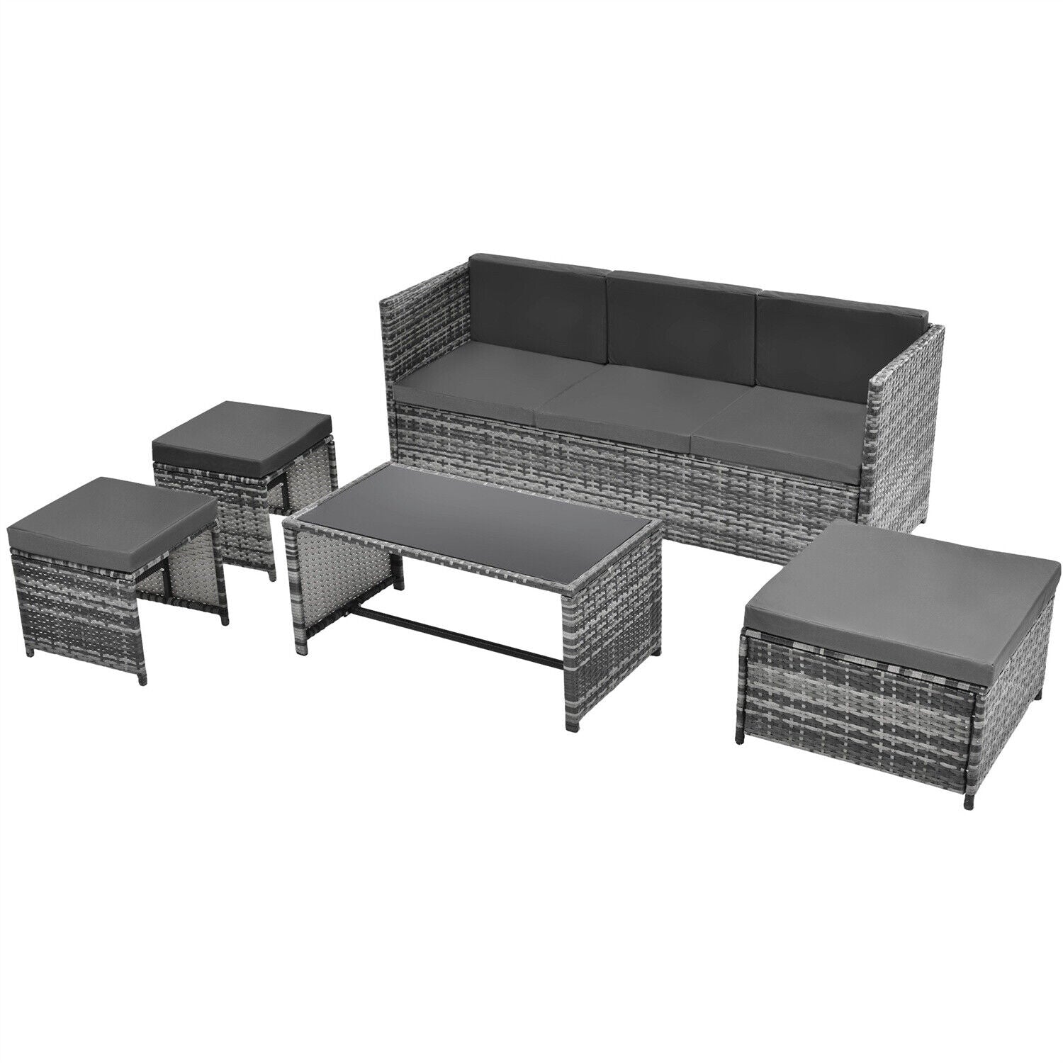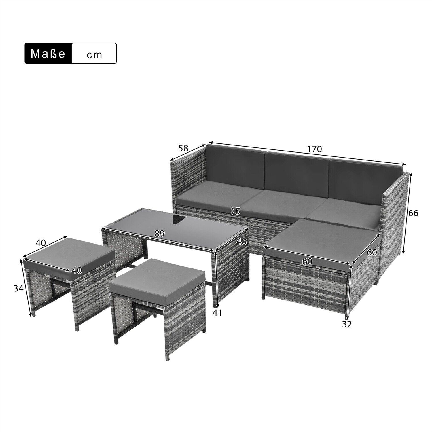 Rattan Garden Furniture Set Sofa Table Recliner Chair Set Patio Outdoor Grey