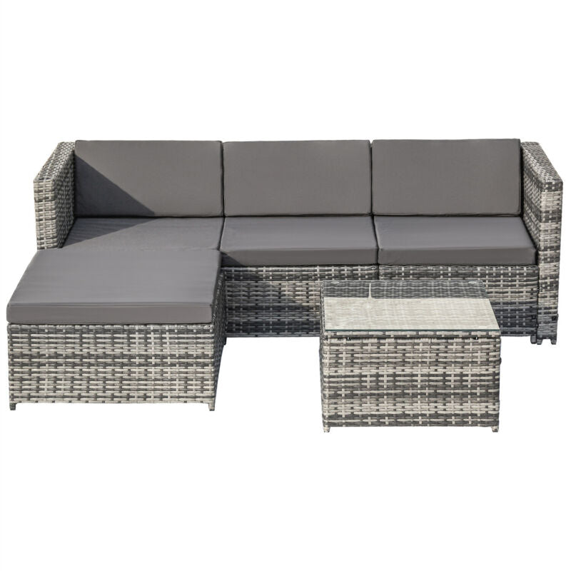 Rattan Garden Patio Corner Sofa Lounge Set Outdoor Garden Furniture Set Grey