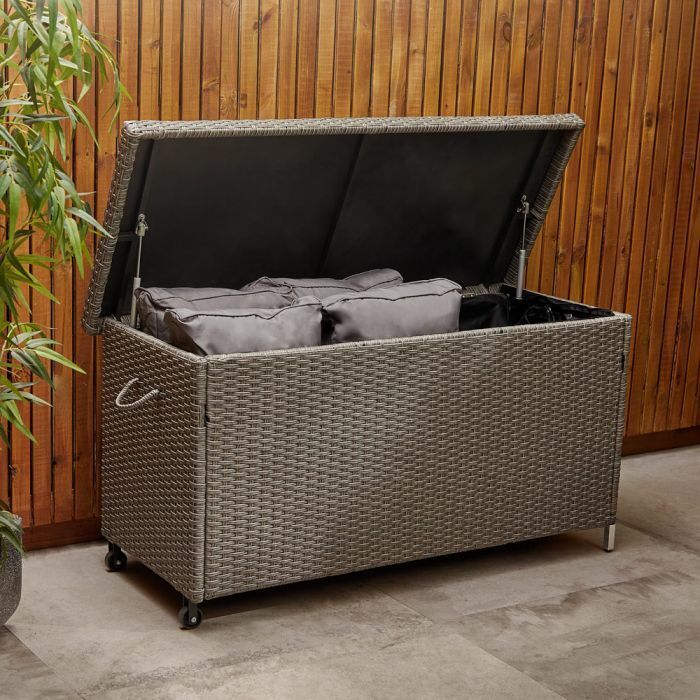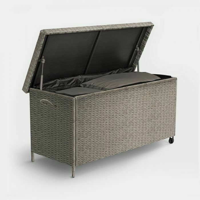 Rattan Look Outdoor Cushion Storage Box Ottoman Style Garden Outdoor Durable ED