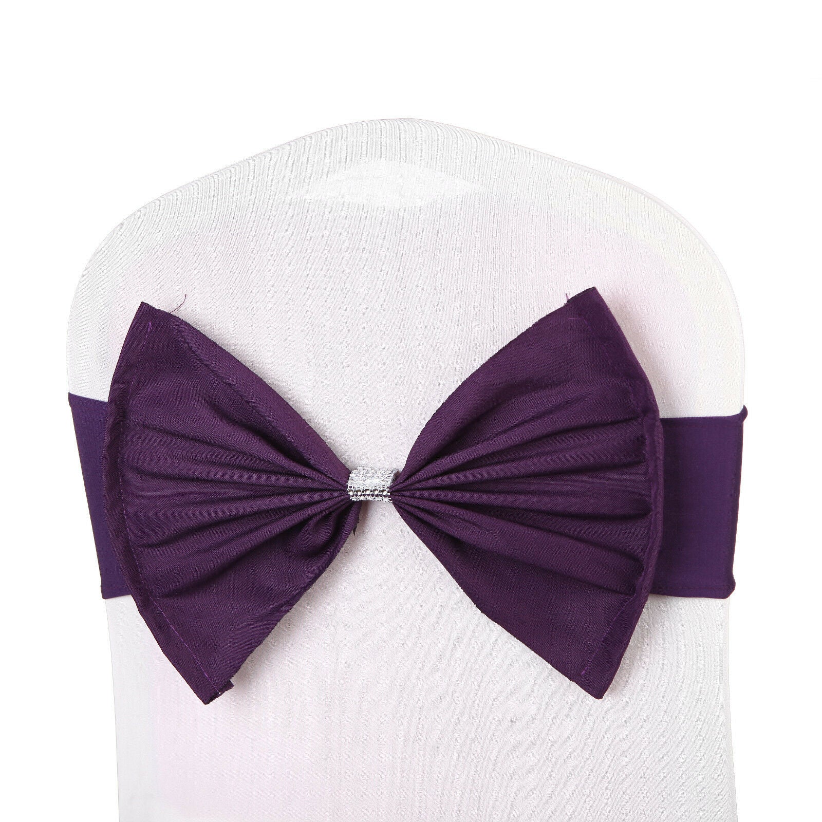 Ready Made Elasticity Stretch Chair Cover Bow Band Buckle Slider Sashes Decor