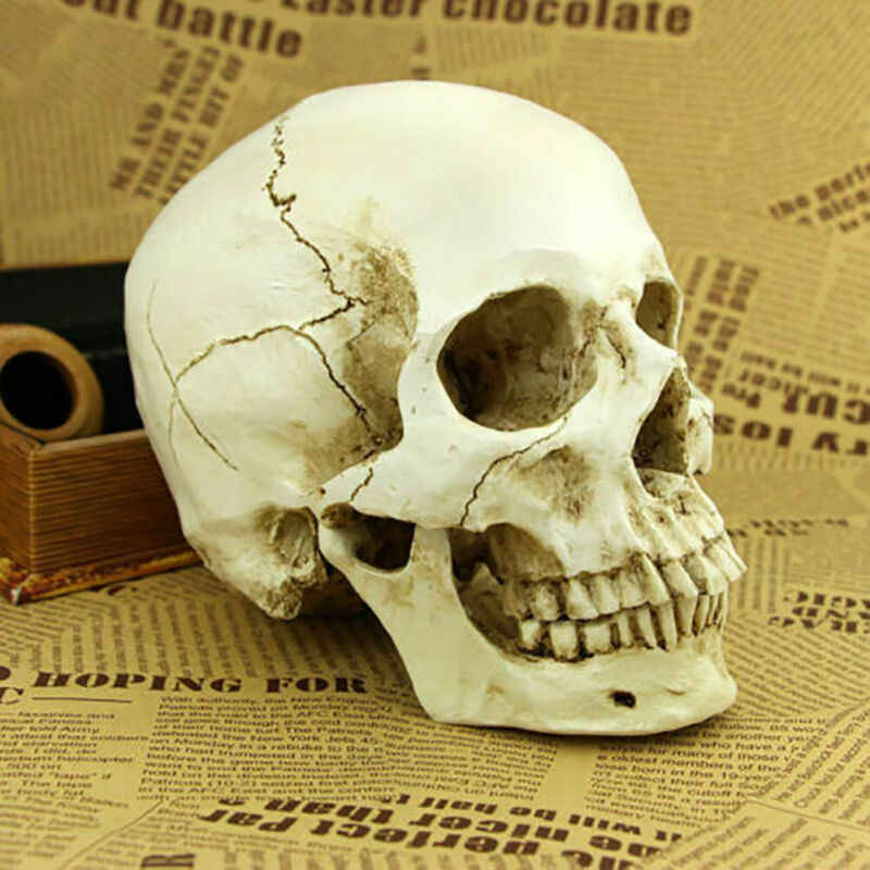 Realistic Skull Head Gothic Figurine Human Skeleton Ornament Horror Art Bar Deco