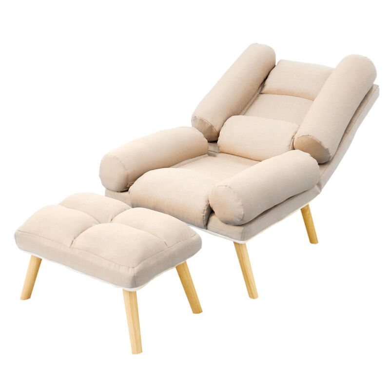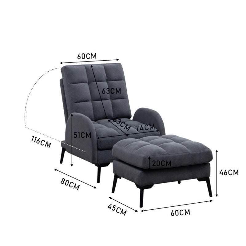 Recliner Armchair Sleeper Chair Lazy Sofa Lounger Home Napping Cinema Seat+Stool