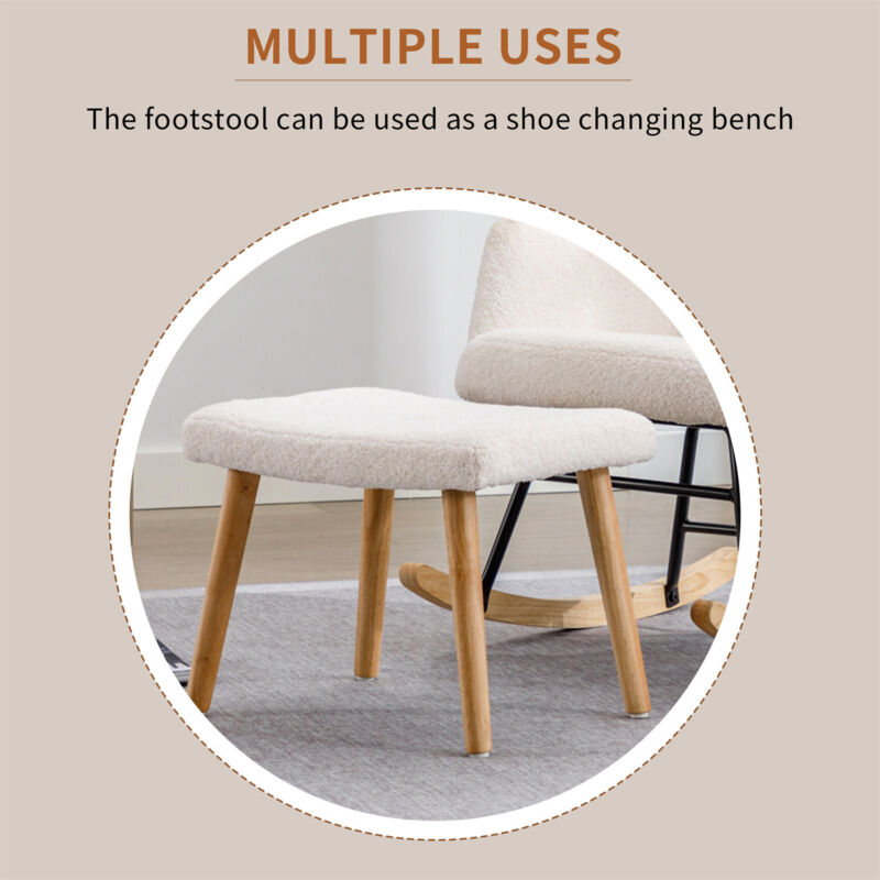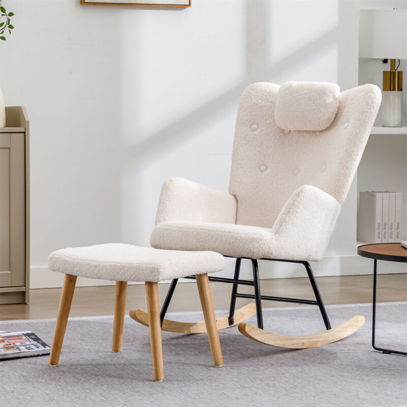 Recliner Chair with Stool Relax Rocking Chair Teddy Velvet Glider Chair Lounge