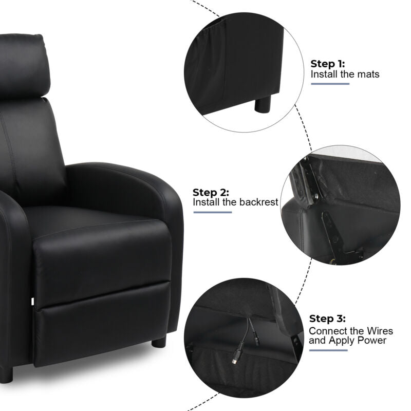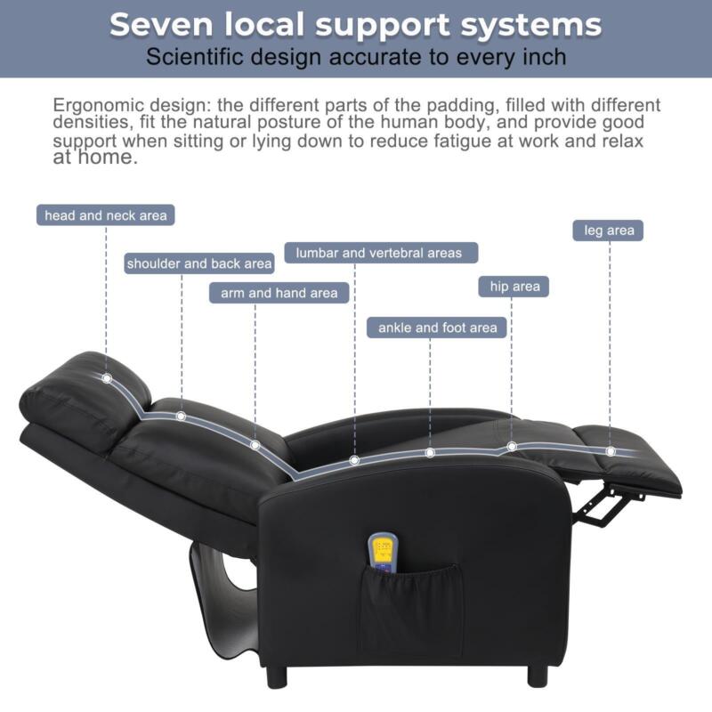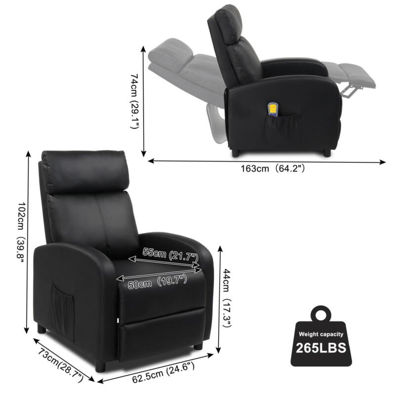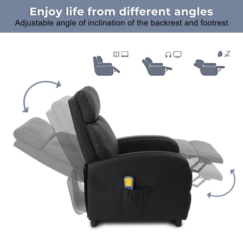 Recliner Massage Sofa PU Upholstered Armchair Electric Massage Heating Function