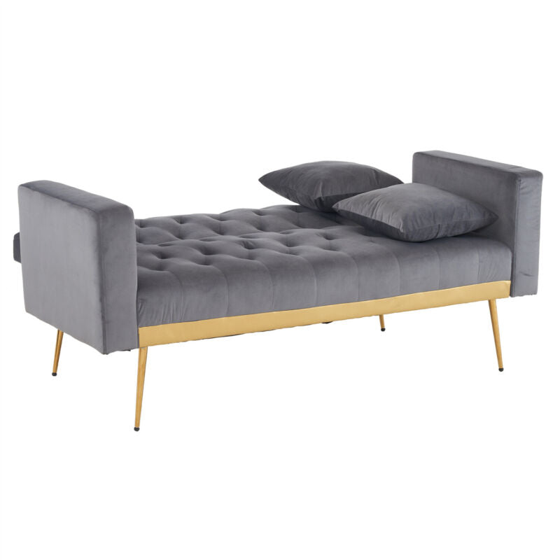 Recliner Sleeper Small Sofa Bed Compact Loveseat Couch Metal Legs Light Grey
