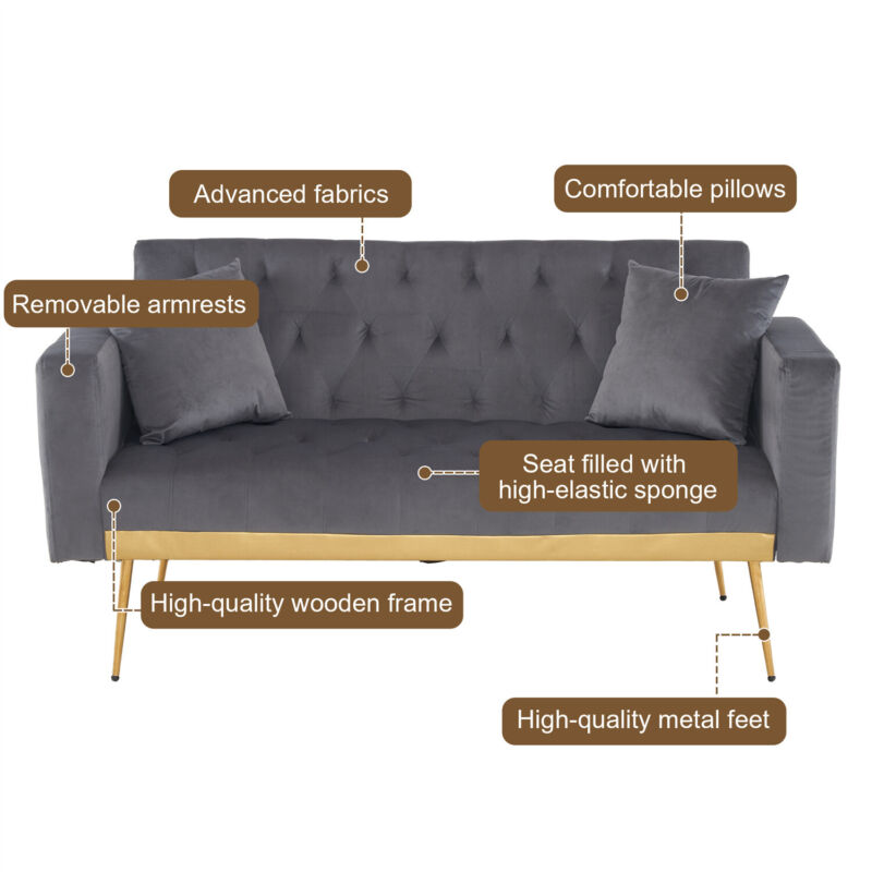 Recliner Small Sofa Bed Loveseat Sofa Couch Metal Legs w/ Adjustable Armrest QN