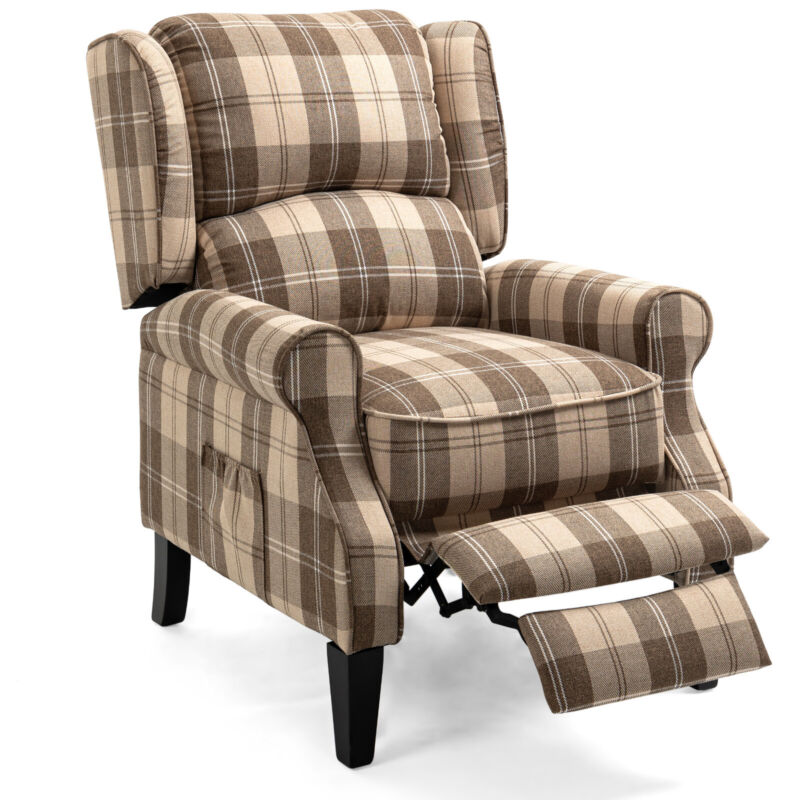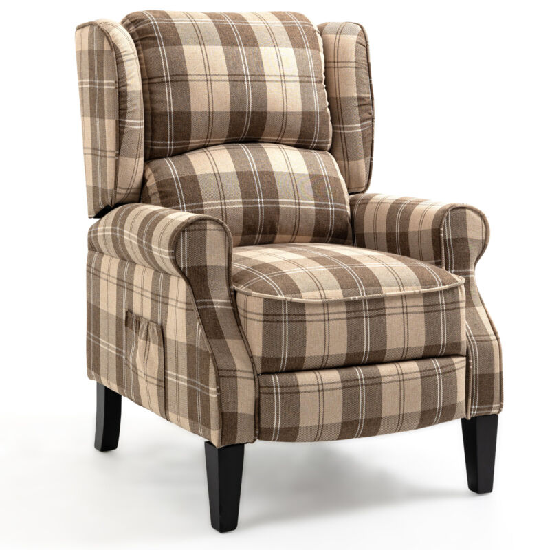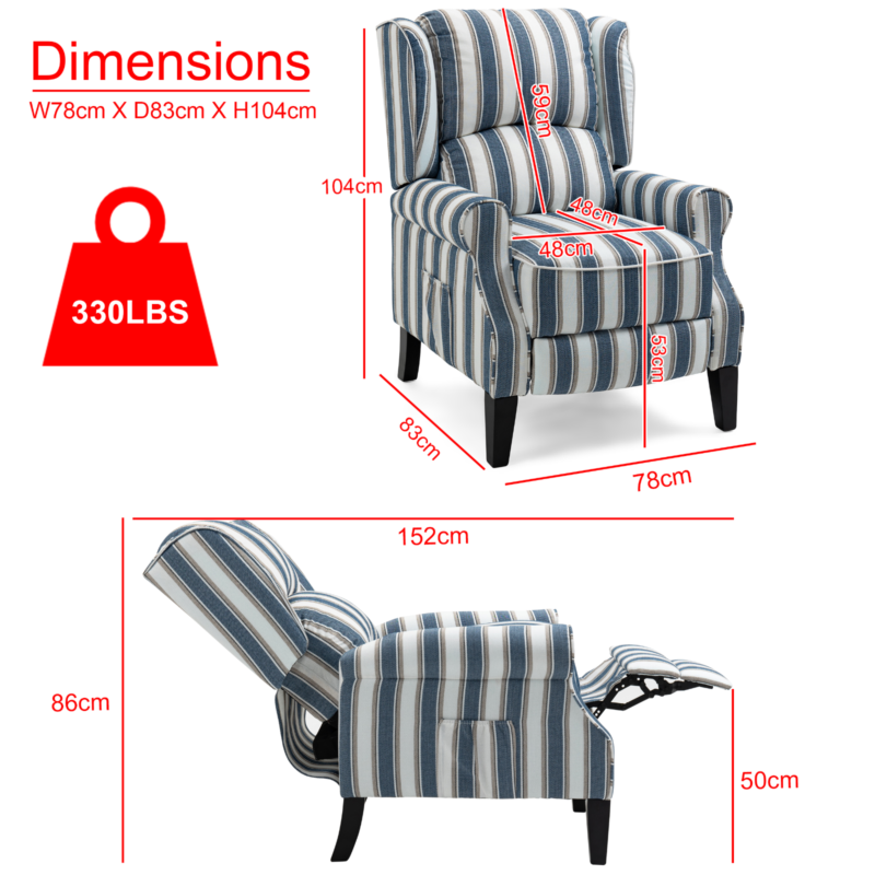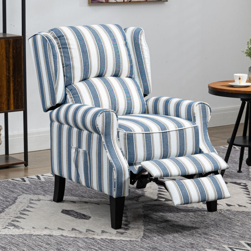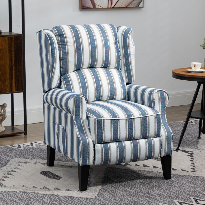 Recliner Sofa Armchair Fireside Push Back Recliner Chair w/ Footrest & Wood Legs