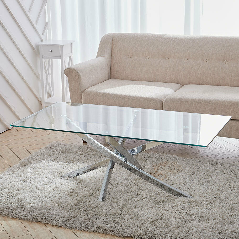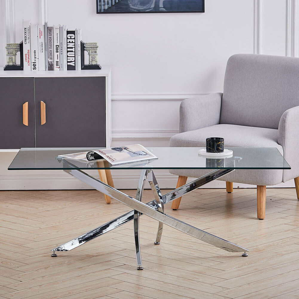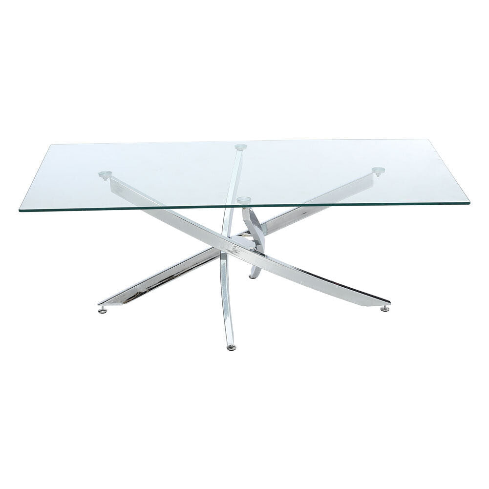 Rectangle Clear Glass Coffee Table With Cross Chrome Legs Living Room Furniture