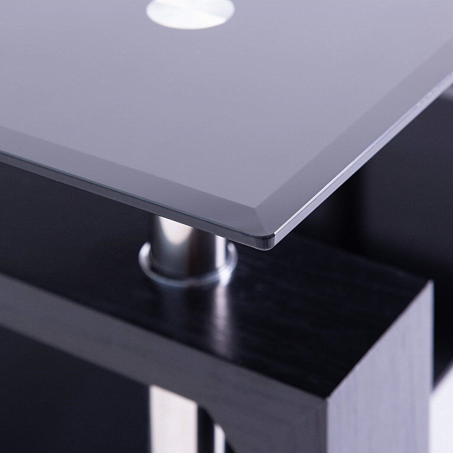 Rectangle Glass Coffee Table With Storage Shelf Modern Living Room Furniture