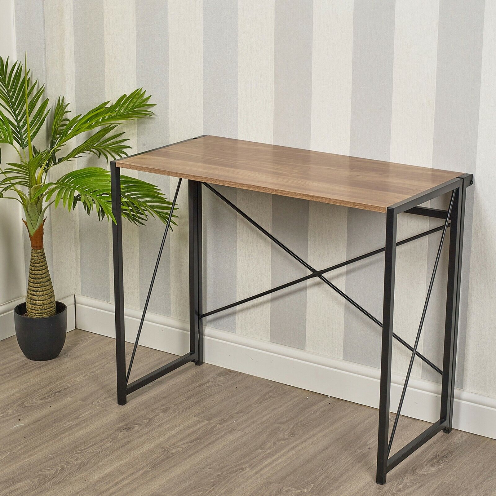 Rectangle Wooden Folding Table Steel Legs Computer Work Office Desk Bedroom