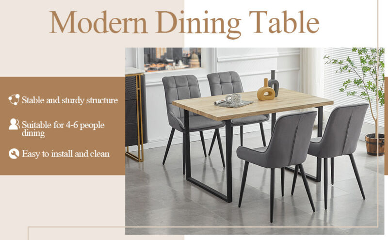 Rectangular Dining Table MDF Metal Legs Wood Table Kitchen Living Room Modern