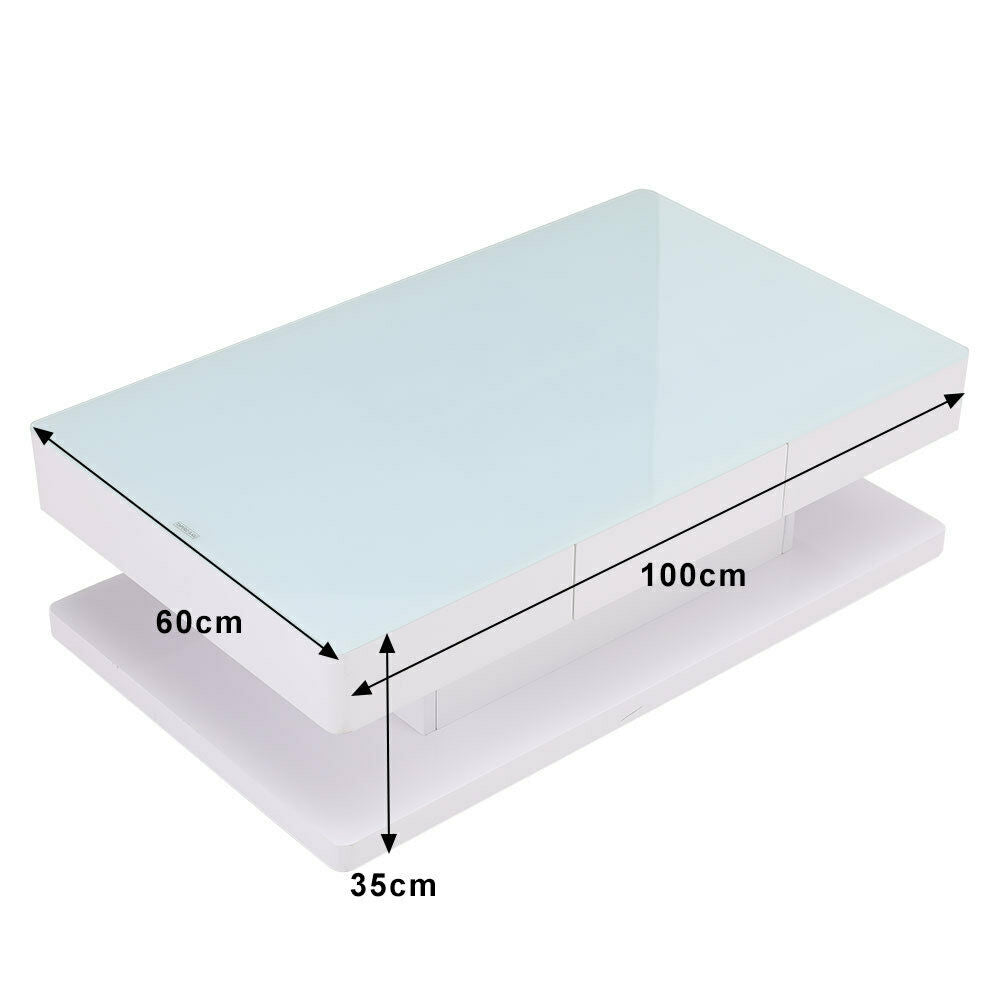 Rectangular High Gloss White Coffee Table with 2 Drawers Shelf Side Centre Stand
