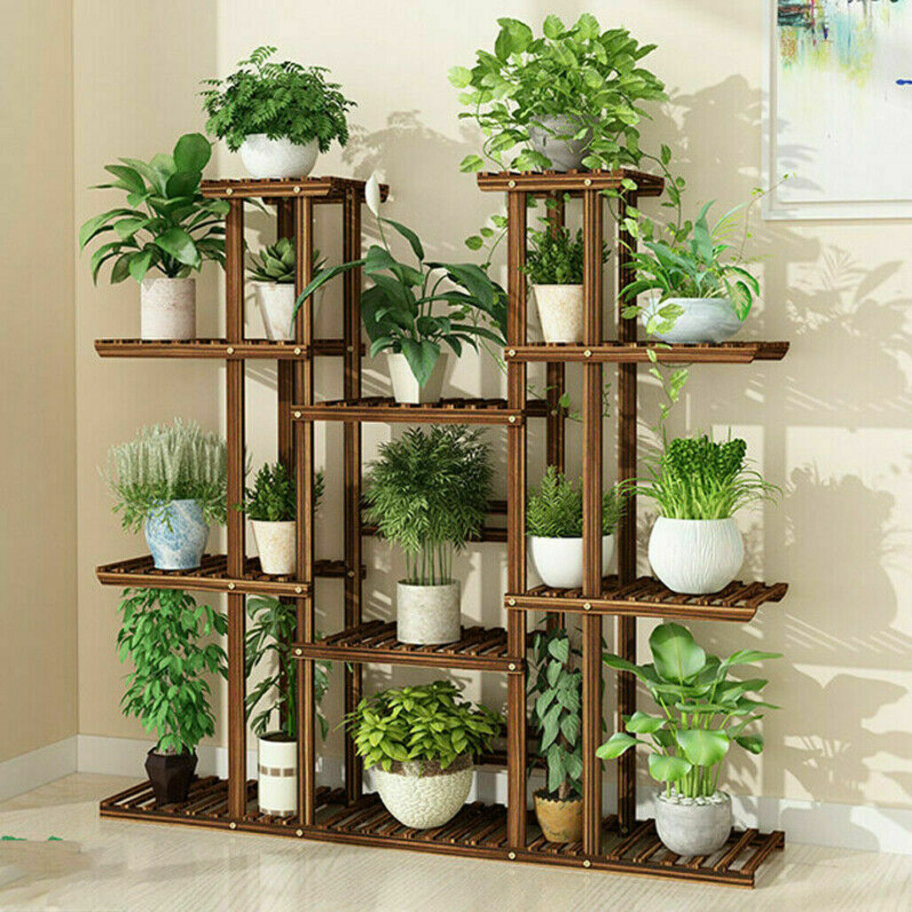 Rectangular Multi-Tiered Solid Wood Plant Flower Stand Heavy Duty Display Shelf