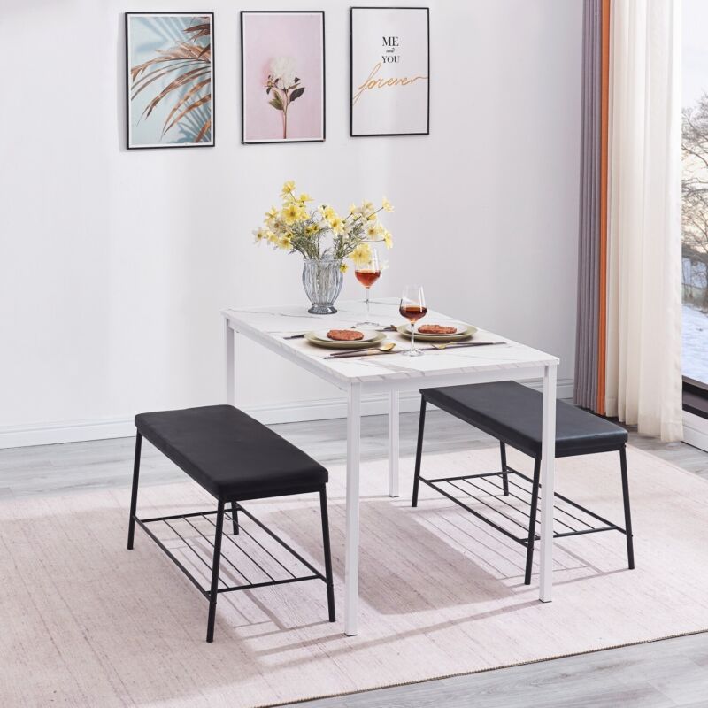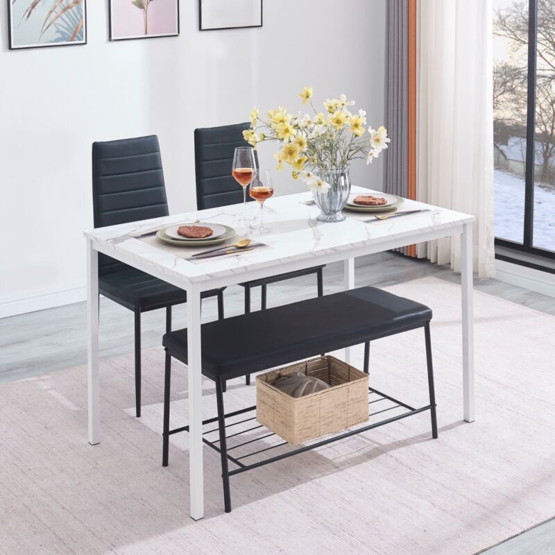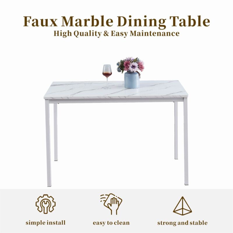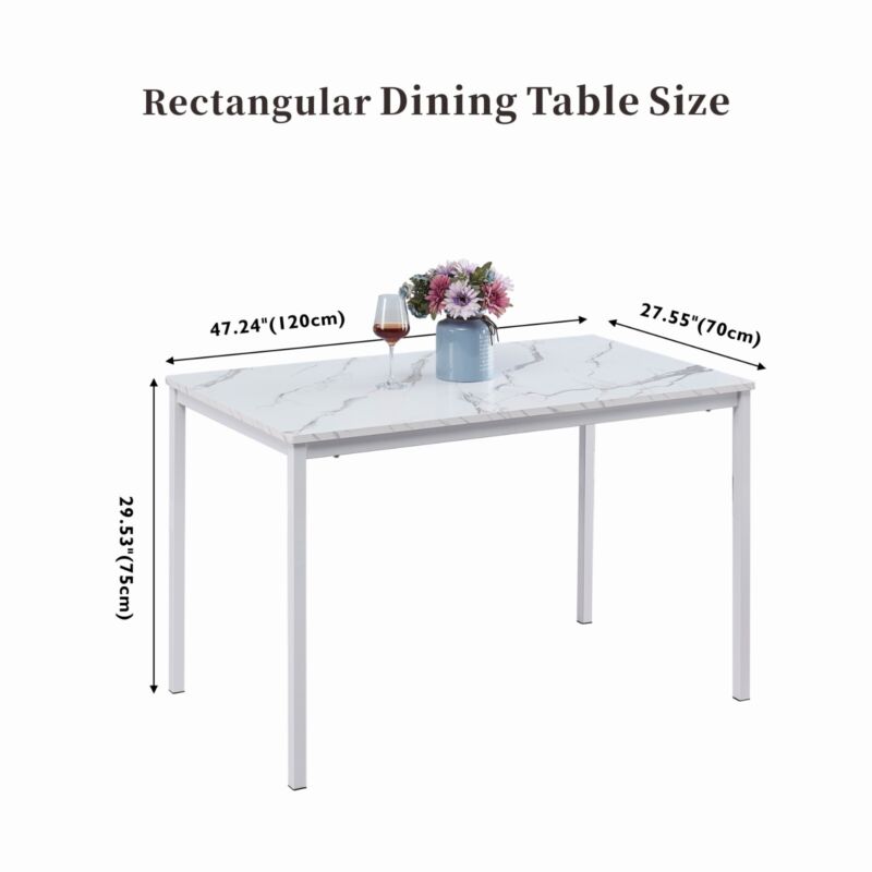 Rectangular White Marble MDF Top Dining Table Metal Legs Dining Room Kitchen