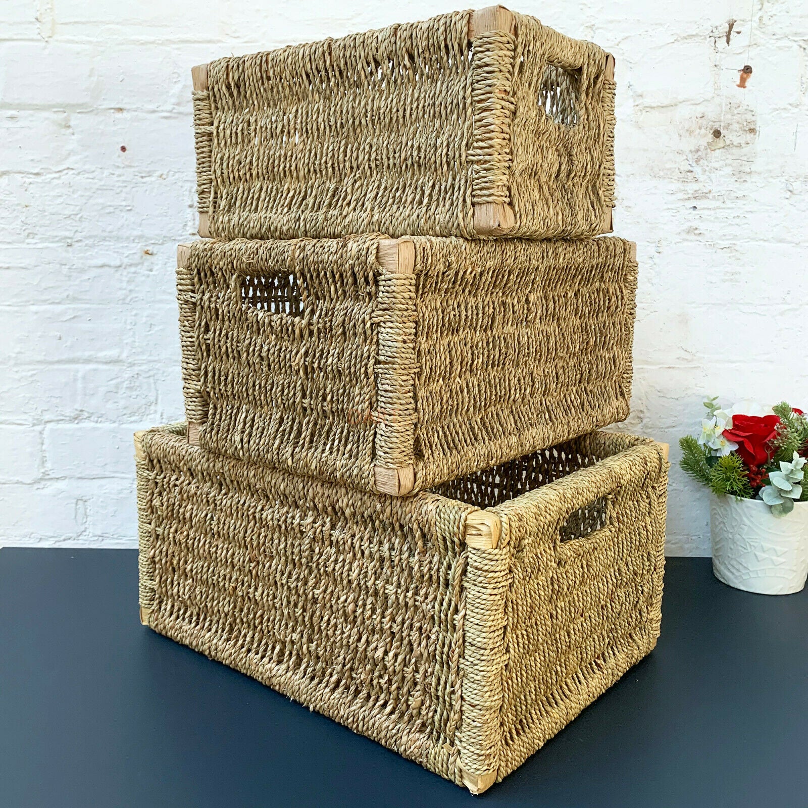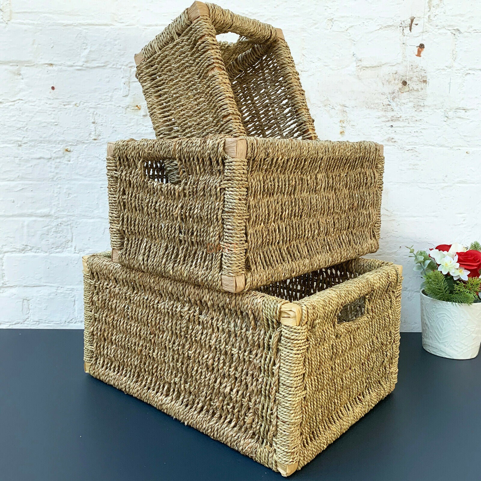 Rectangular Woven Seagrass Hampers Bathroom Kitchen Wicker Basket Storage Gift