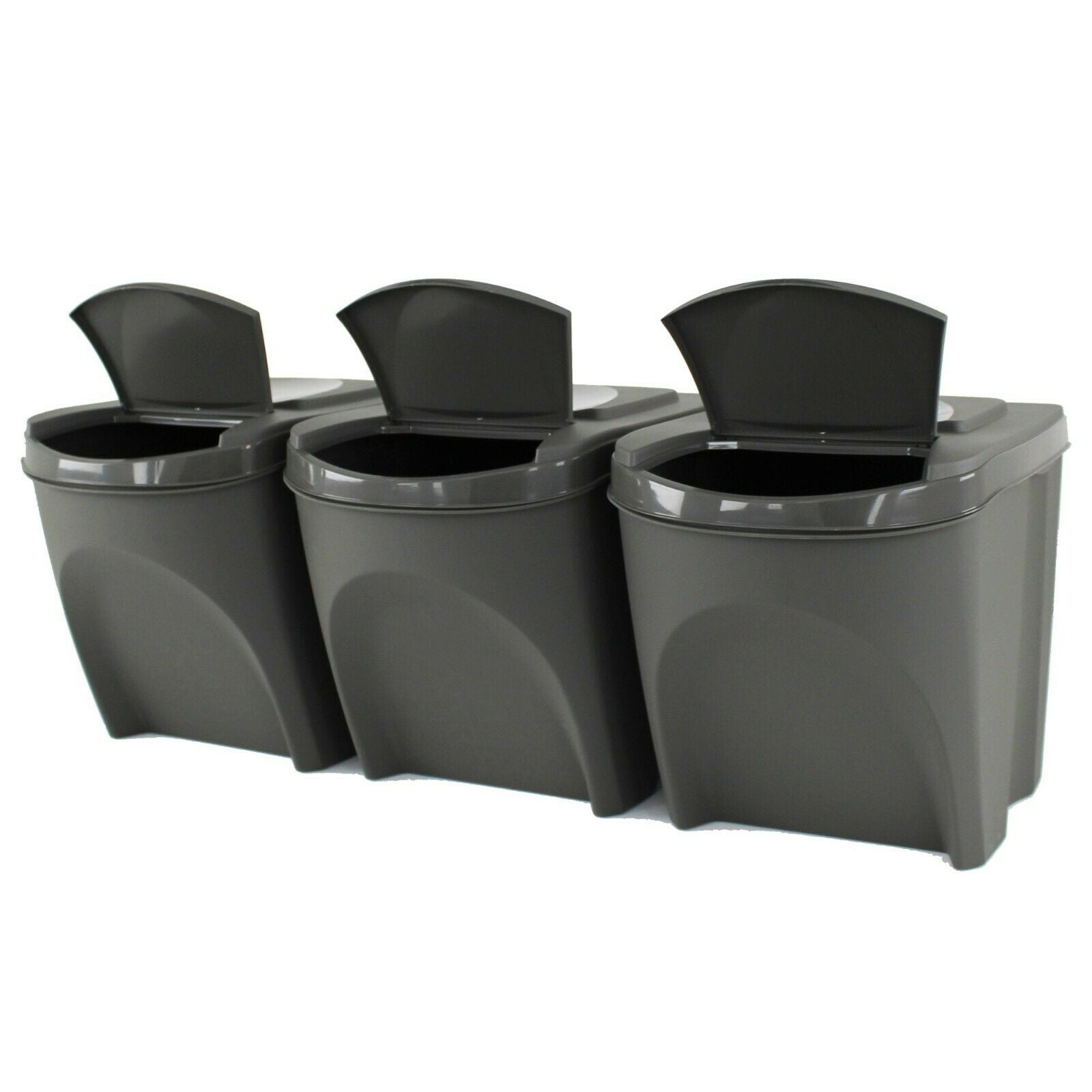 Recycle Bins 25L x 3 Food Stackable Waste Recycling Lids Kitchen Garden Dustbin
